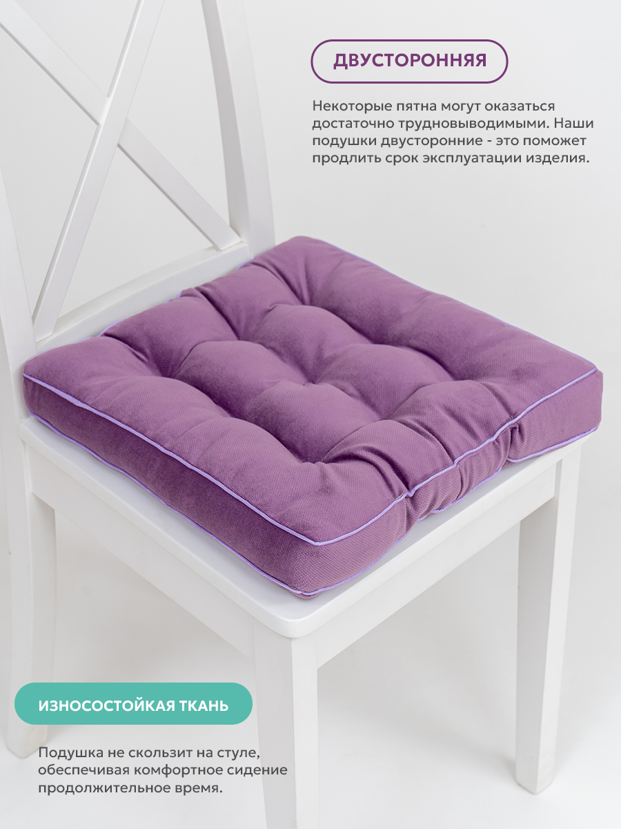 Купить Подушка на стул квадратная 40х40 высокая на табурет икеа , фиолет