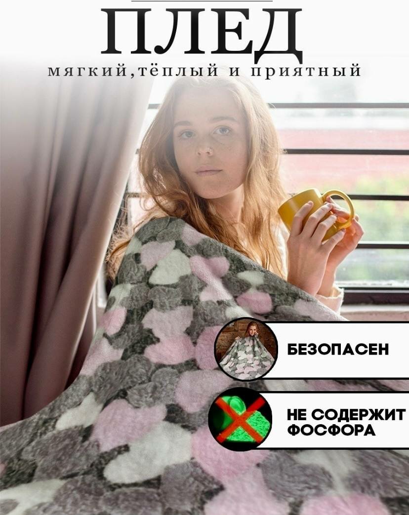 Плед "Сердечки" 180х200 см, мягкий, пушистый, тонкий