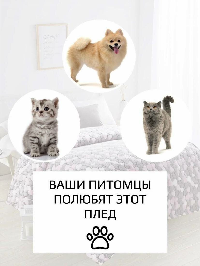Плед "Лапки" 180x200 см, бамбуковый Мягкий пушистый покрывало