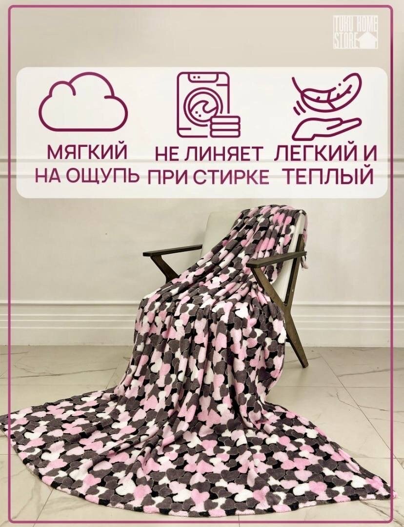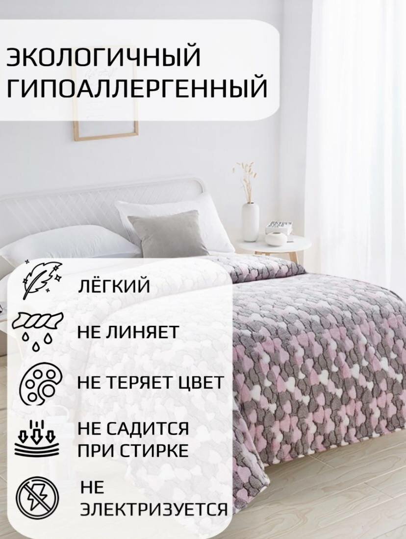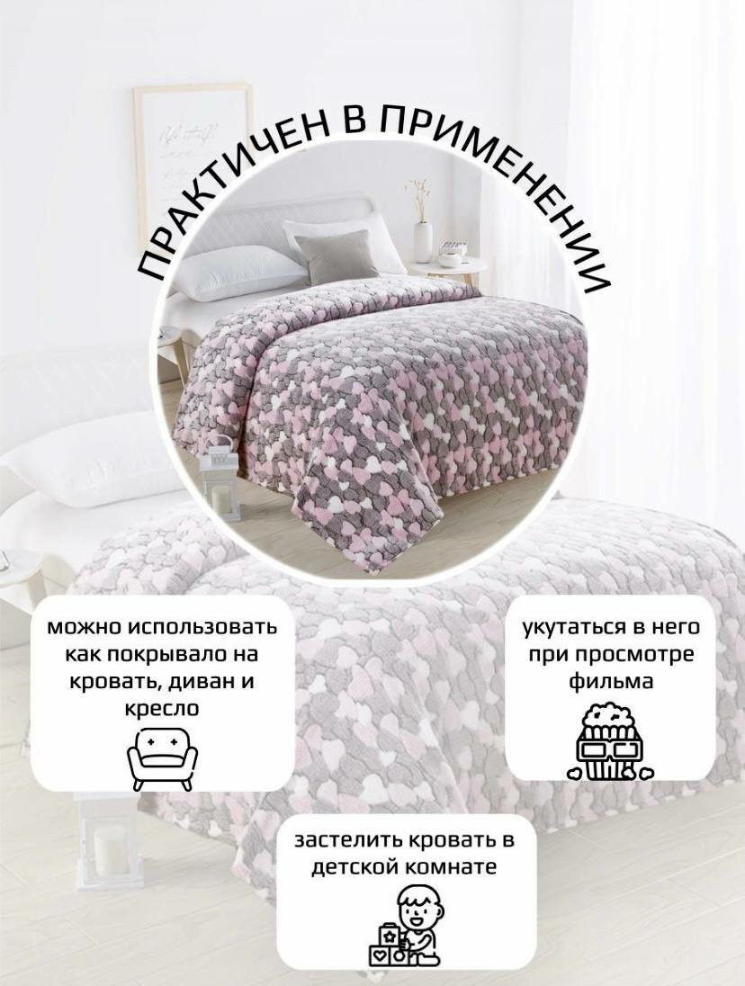 Плед "Сердечки" 180х200 см, мягкий, пушистый, тонкий плед-покрывало интересное:
