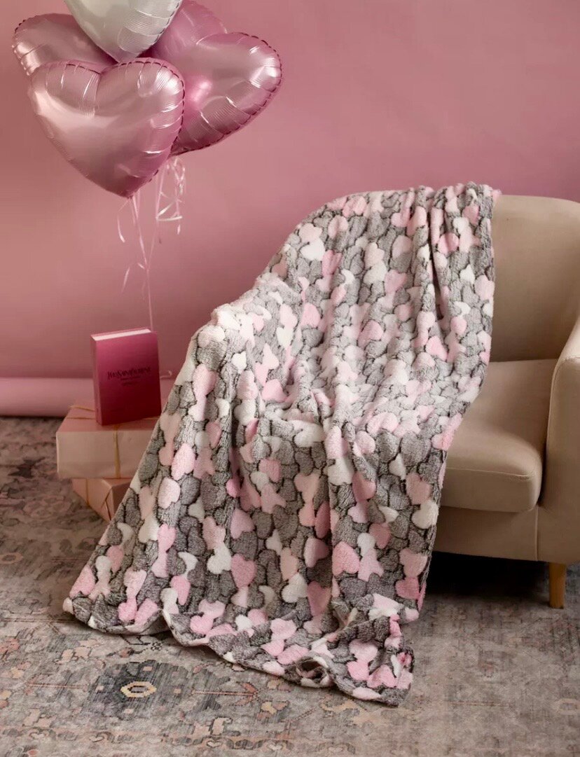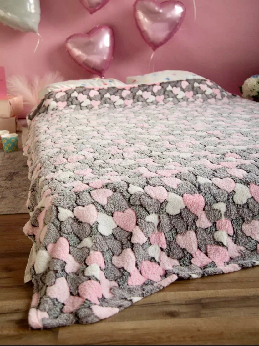 Купить Плед "Сердечки" 180х200 см, мягкий, пушистый, тонкий плед-покрывало