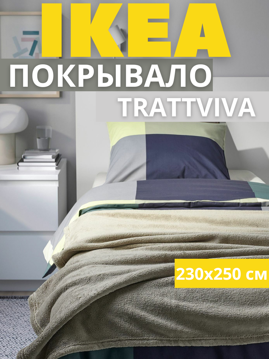 СохранитьПокрывало-плед на кровать, диван, серо-зеленый, 230х250 см ТРАТТВИВА ИКЕА интересное: