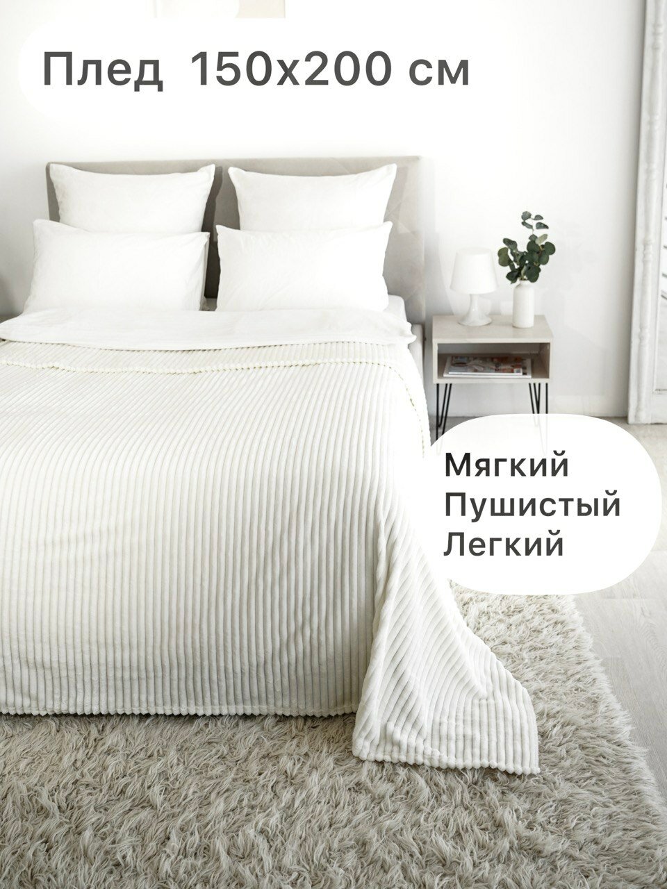 Плед Texrus, Велсофт 180х200, белый/мягкий