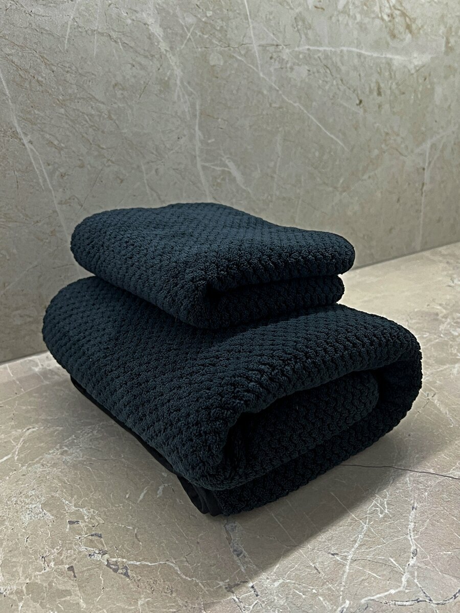 Купить Комплект из двух полотенец, банное полотенце, полотенце для рук и лица, черный