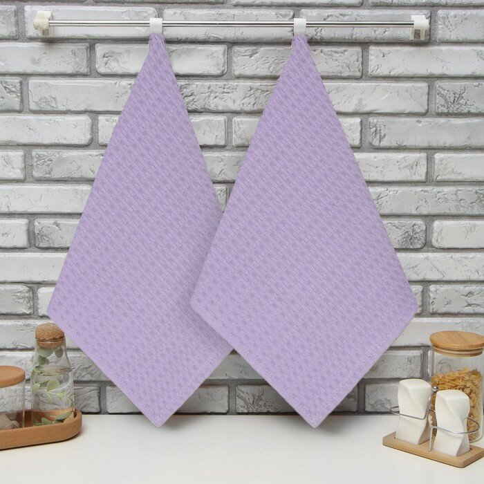 Купить Набор кух. полотенец "Доляна" лавандовый 35х60см-2шт, 100% хл, вафля, 220 гр/м2