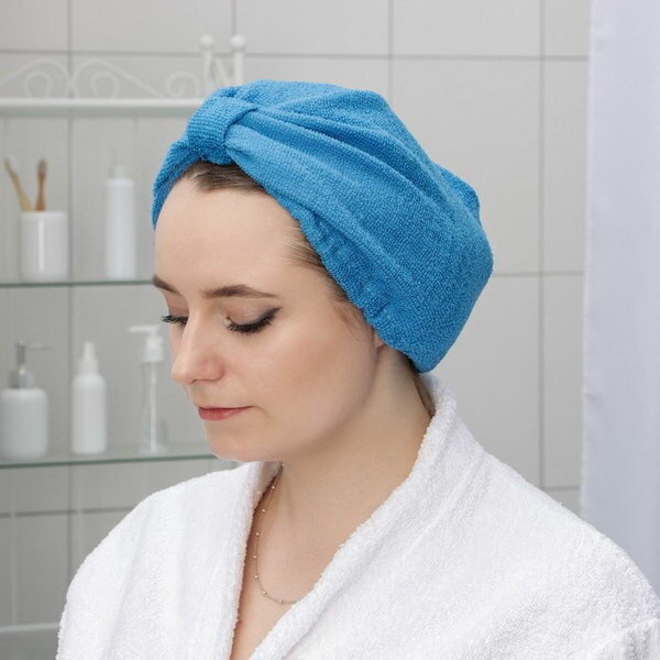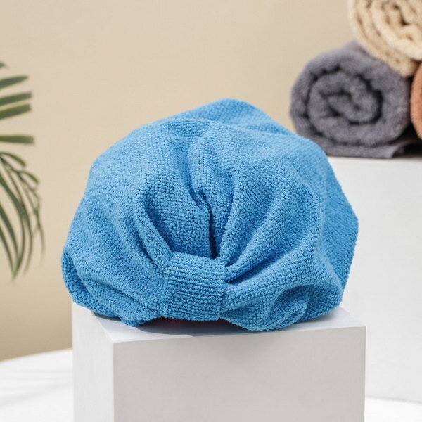 Чалма для сушки волос микрофибра, цвет синий интересное: