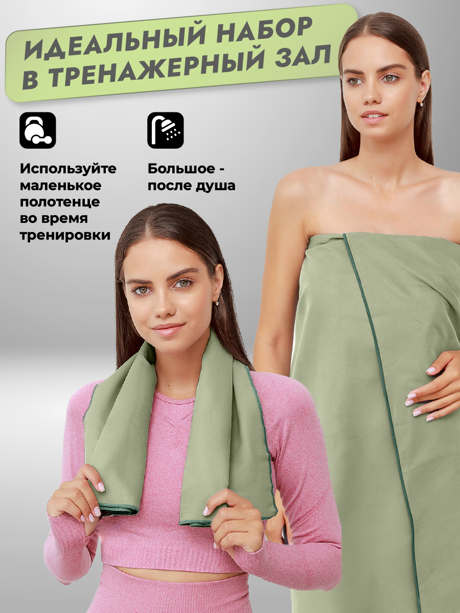 Набор спортивных полотенец OCEAS из микрофибры ,быстросохнущее для фитнеса и йоги, 150х75 см, 40х80 см, хаки