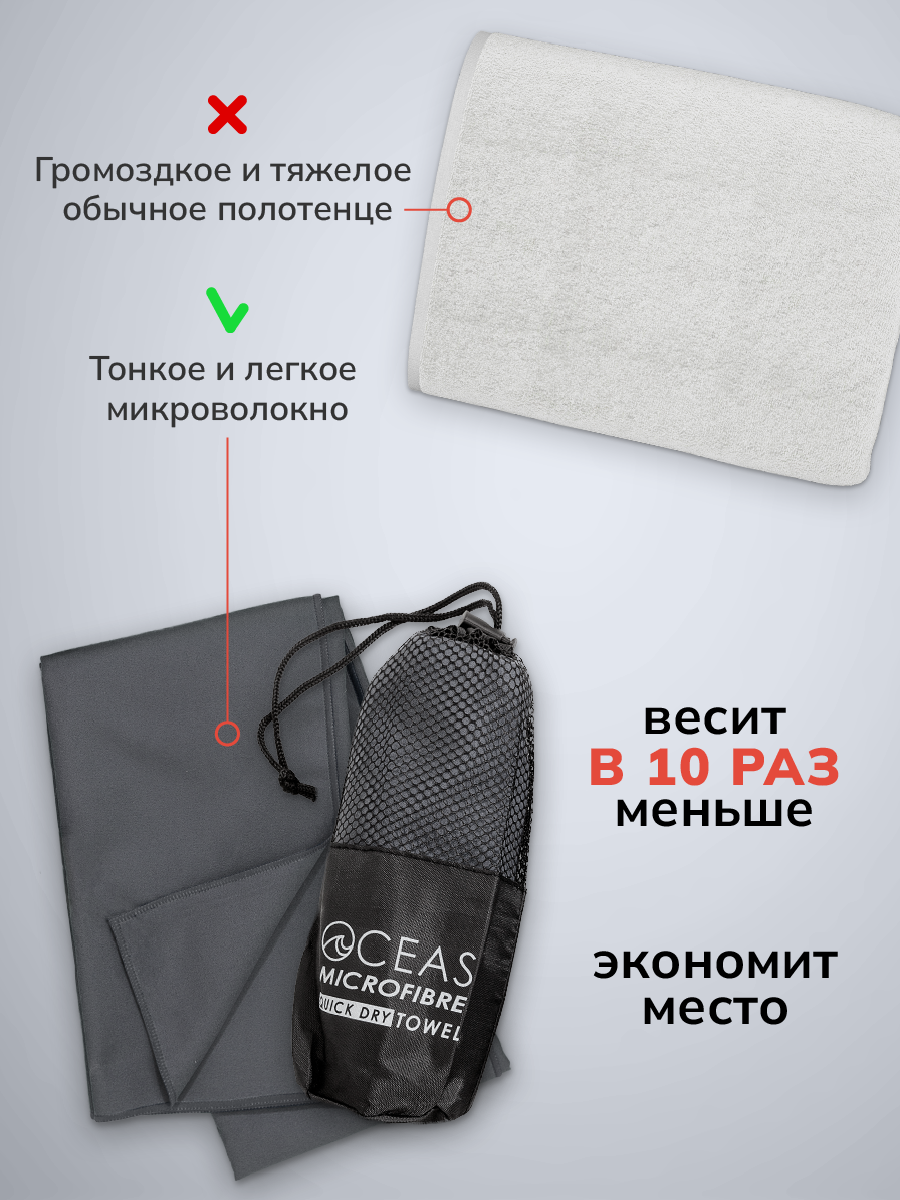 СохранитьПолотенце спортивное OCEAS из микрофибры , быстросохнущее для фитнеса и йоги, 80х40 см, темно-серый интересное: