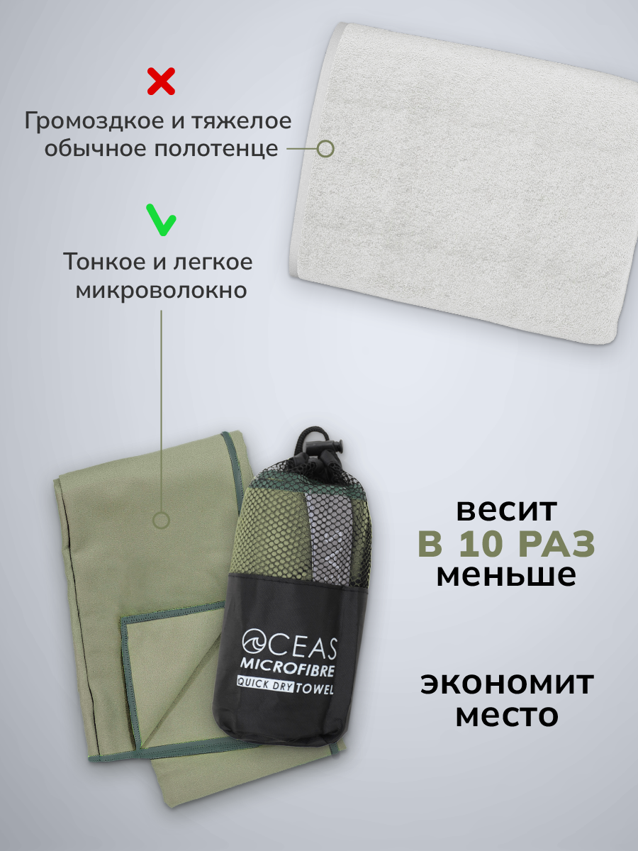 Купить Полотенце спортивное OCEAS из микрофибры , быстросохнущее для фитнеса и йоги, 80х40 см, хаки
