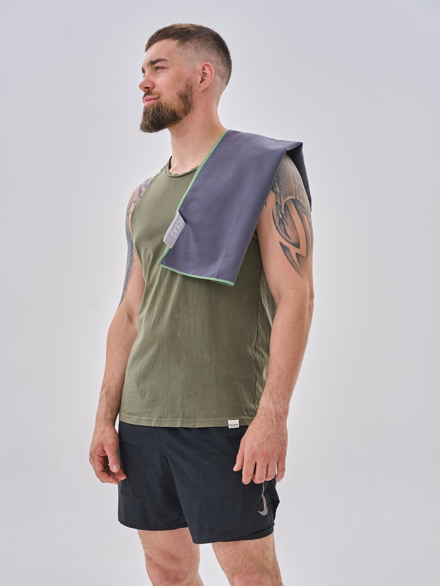 Полотенце спортивное OCEAS из микрофибры ,быстросохнущее для фитнеса и йоги, 80х40 см, хаки