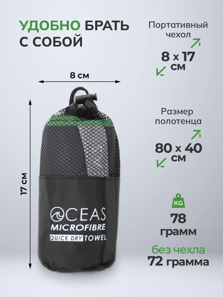 Полотенце спортивное OCEAS из микрофибры , быстросохнущее для фитнеса и йоги, 80х40 см, салатовый