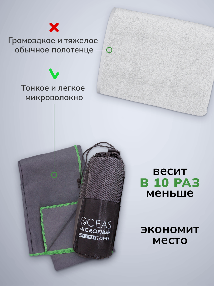 СохранитьПолотенце спортивное OCEAS из микрофибры , быстросохнущее для фитнеса и йоги, 80х40 см, темно-серый с зеленой строчкой интересное: