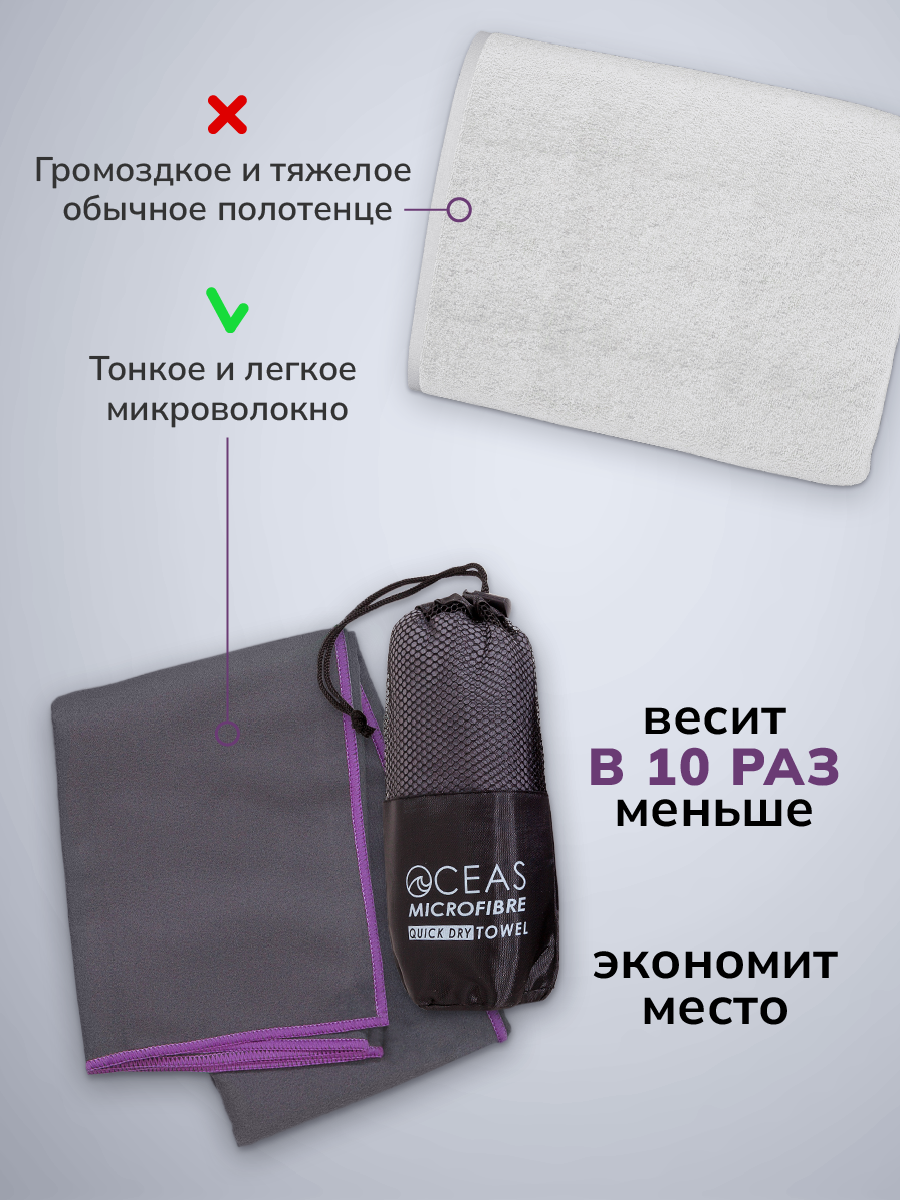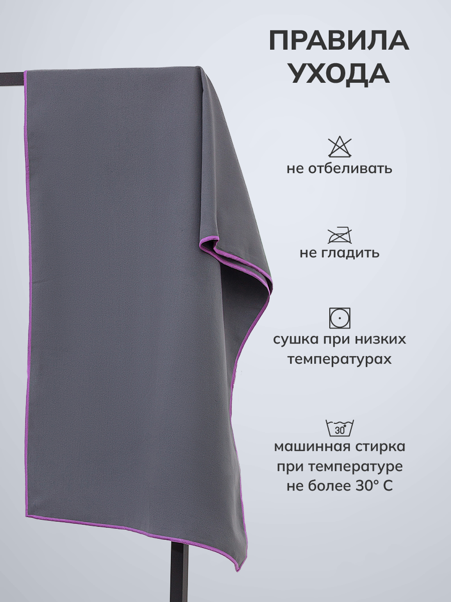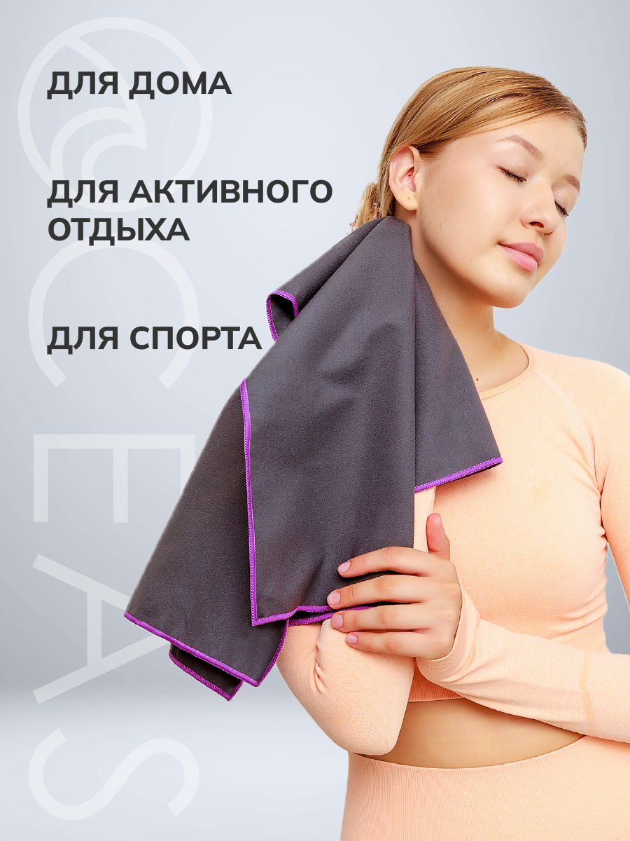 СохранитьПолотенце спортивное OCEAS из микрофибры , быстросохнущее для фитнеса, 80х40 см, тёмно-серый с фиолетовой строчкой интересное: