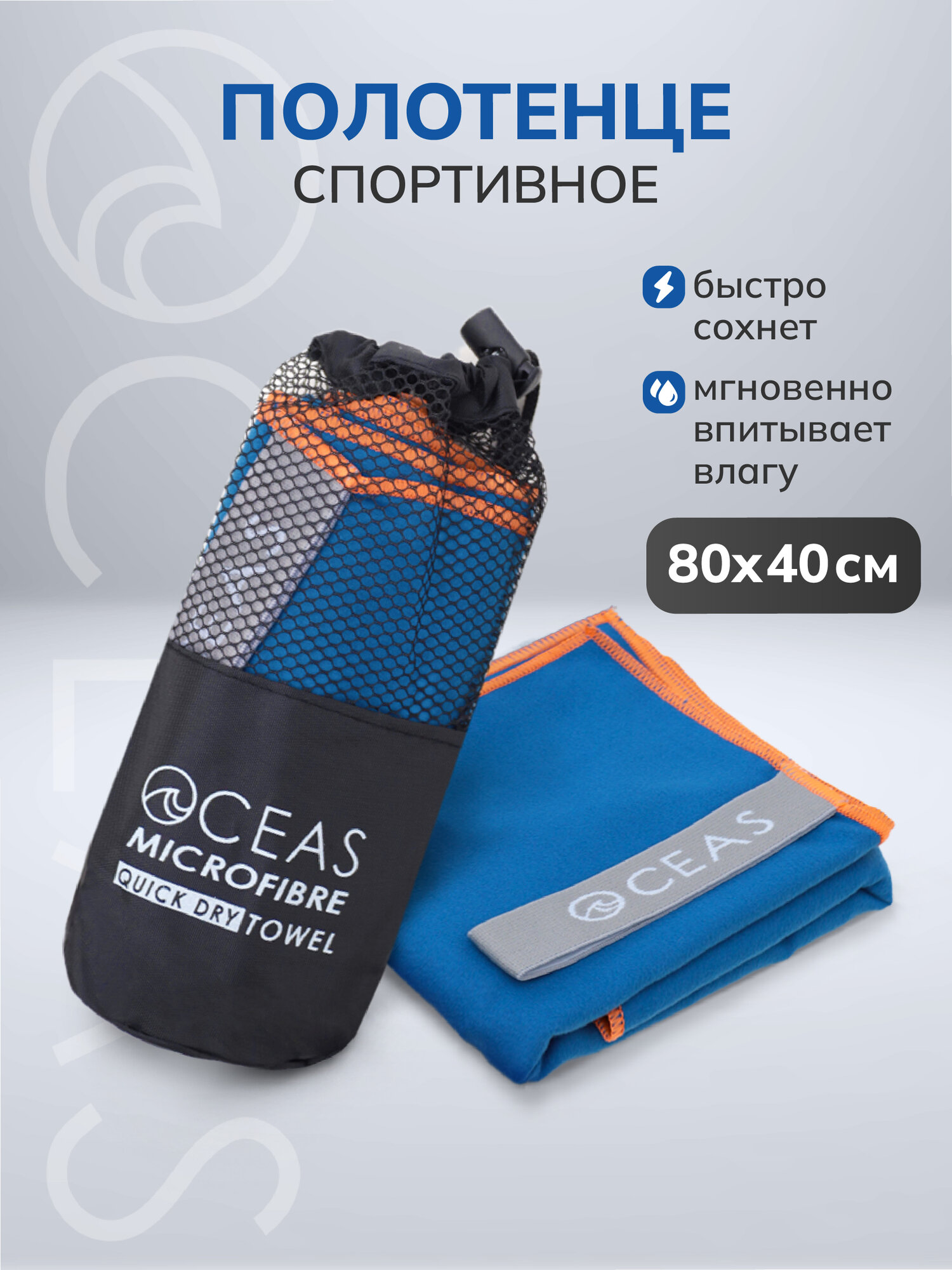 Полотенце спортивное OCEAS из микрофибры ,быстросохнущее для фитнеса и йоги, 80х40 см, синий