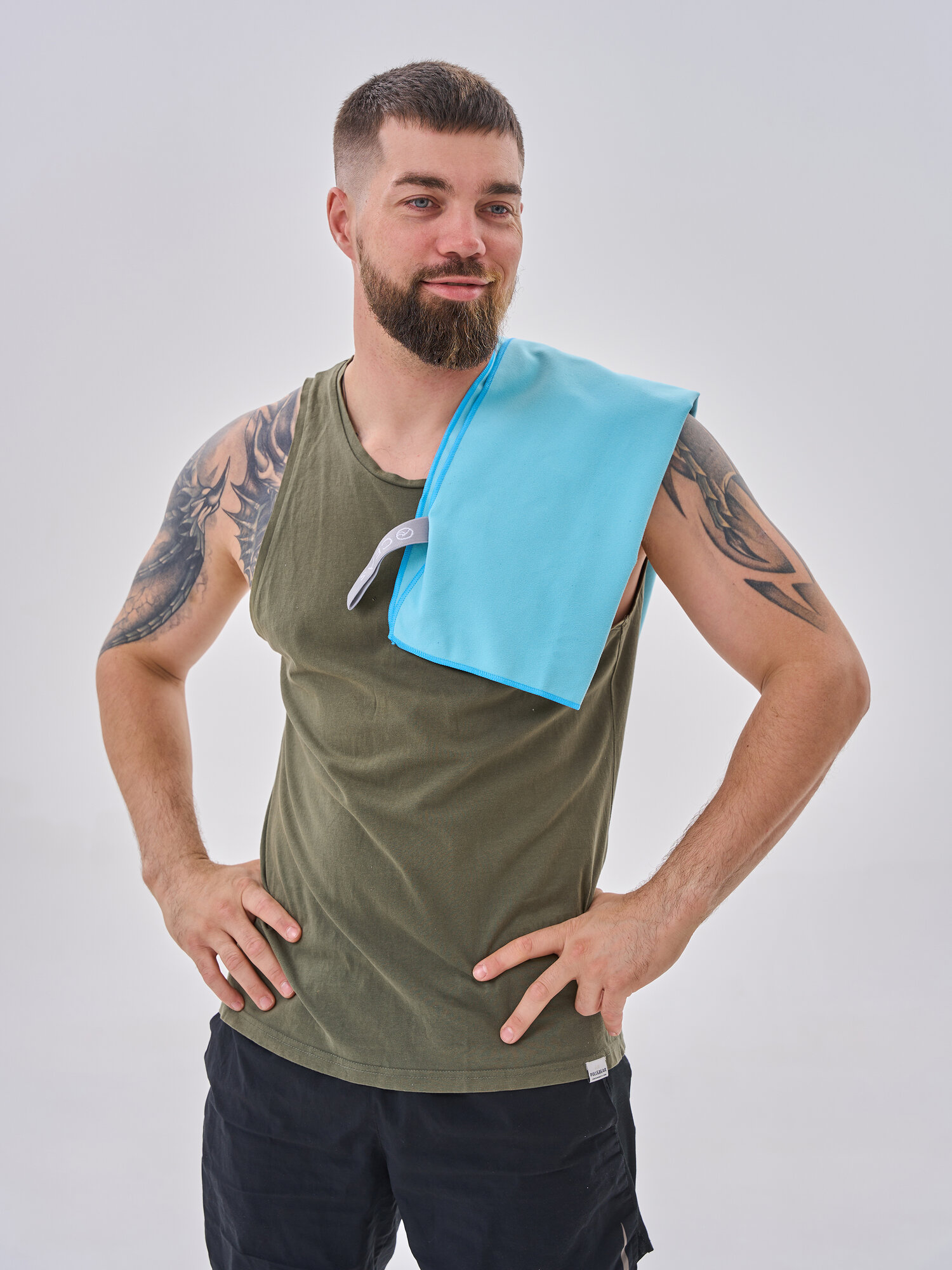 Полотенце спортивное OCEAS из микрофибры ,быстросохнущее для фитнеса и йоги, 80х40 см, голубой