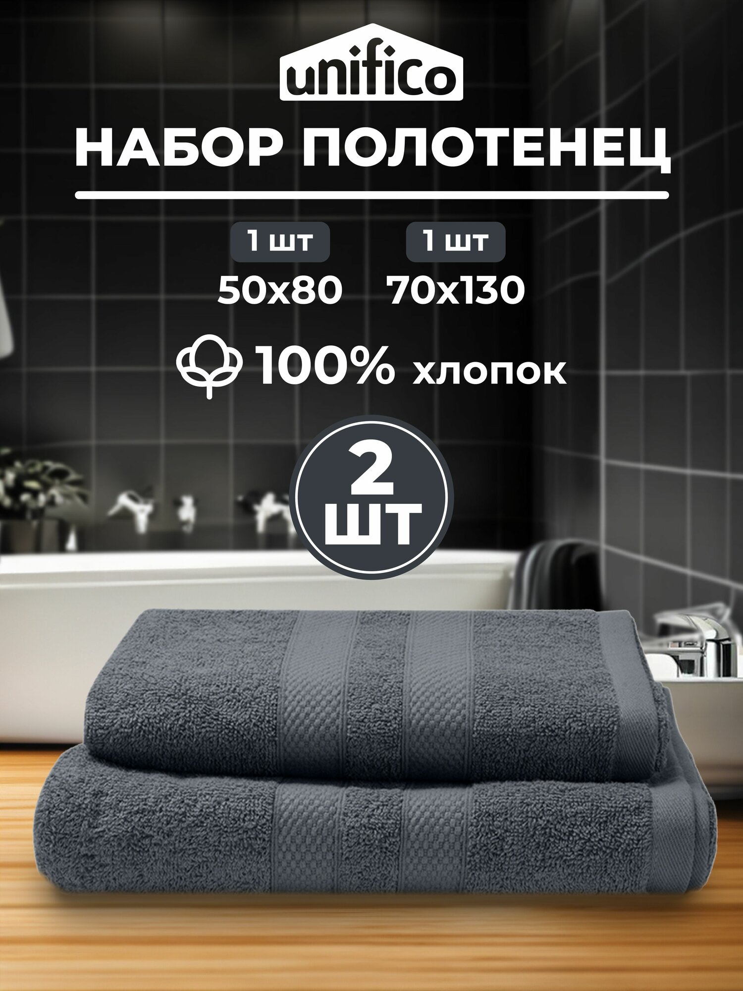 Полотенца махровые Unifico Nature антрацит, набор из 2 шт: 50х80-1,70х130-1 интересное: