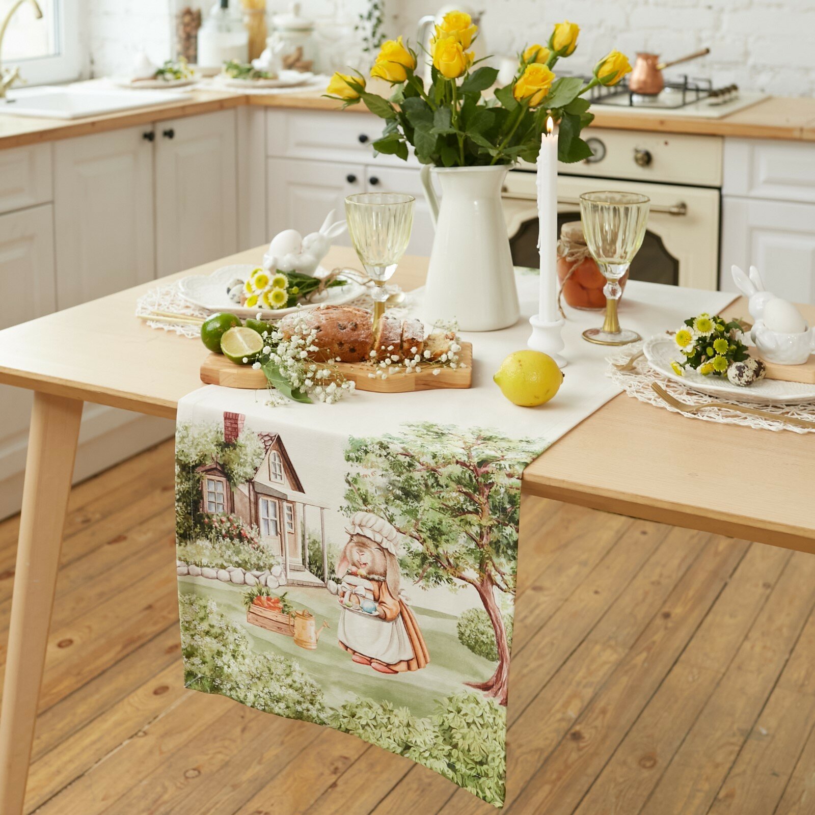 Дорожка на стол "Этель" пасхальная (скатерть) с кроликами Лесная сказка 40х149 см, 100% хл, саржа 190 г/м2