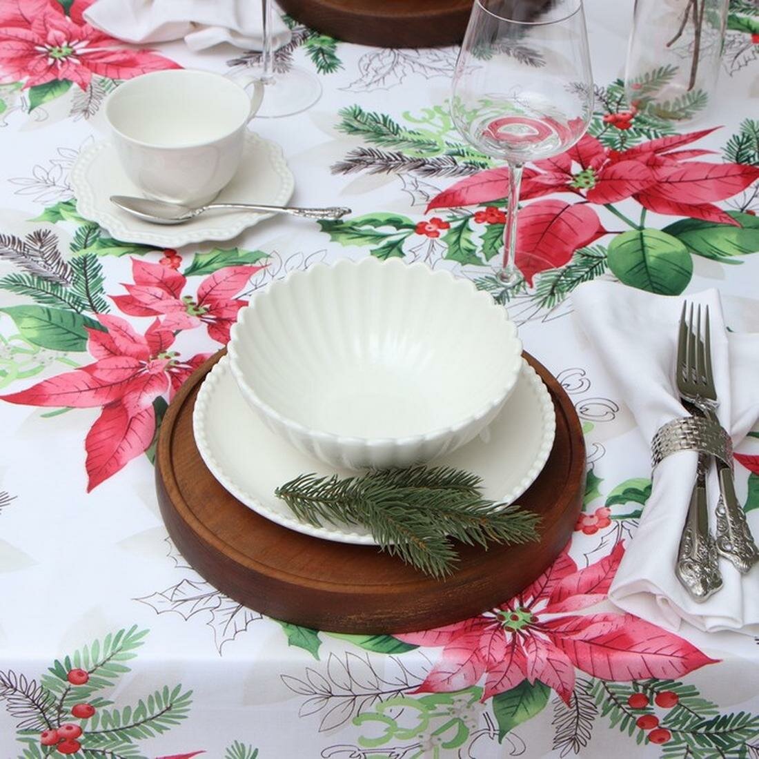 Скатерть новогодняя "Рождественские цветы" 145*220 см, 100% п/э