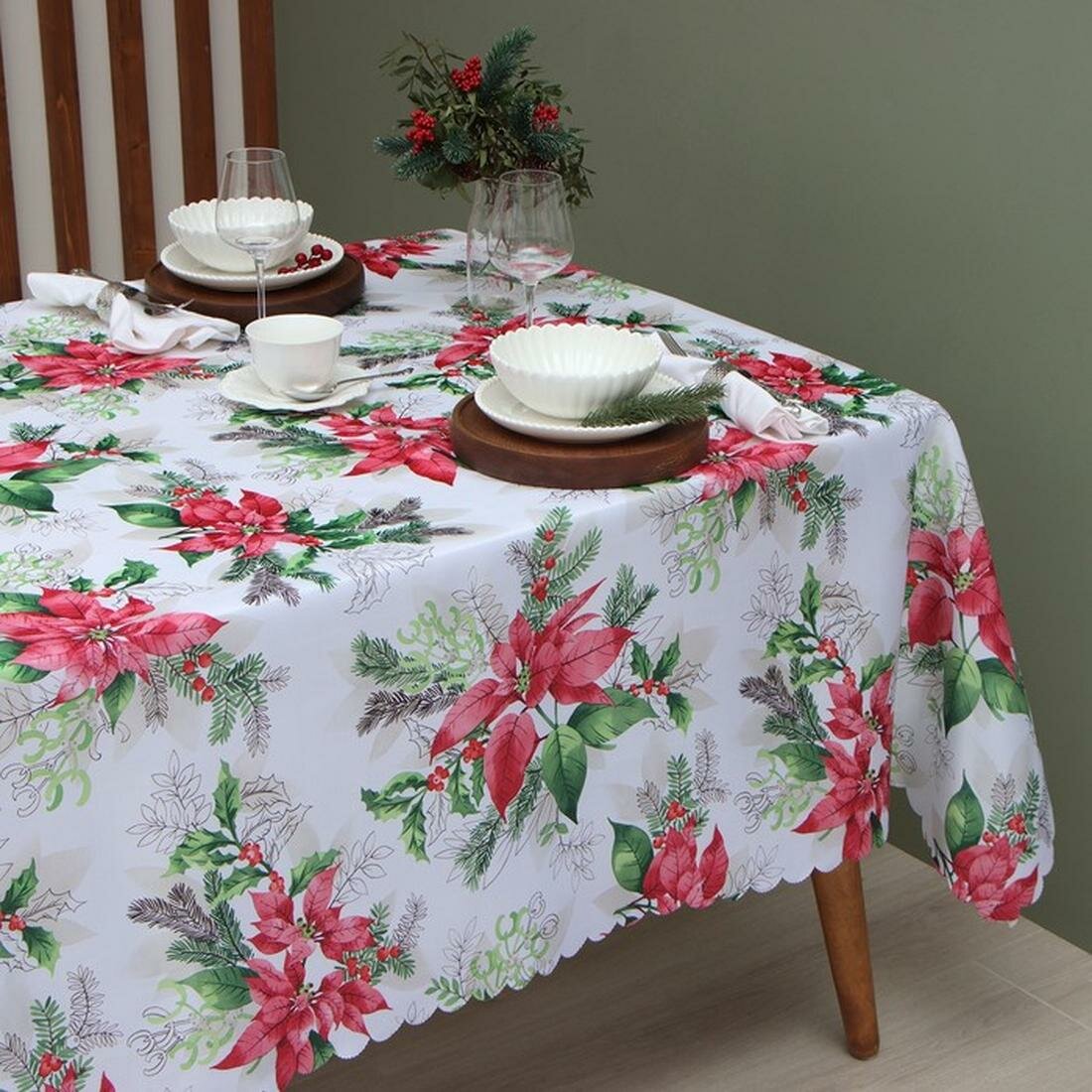 Скатерть новогодняя Доляна "Рождественские цветы" 145*220 см, 100% п/э