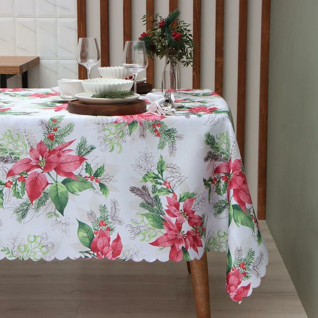 Скатерть новогодняя Доляна "Рождественские цветы" 145*220 см, 100% п/э