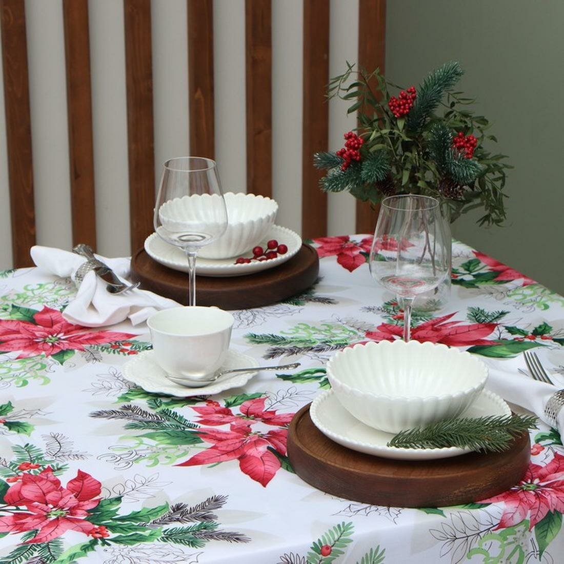 Скатерть новогодняя "Рождественские цветы" 145*220 см, 100% п/э