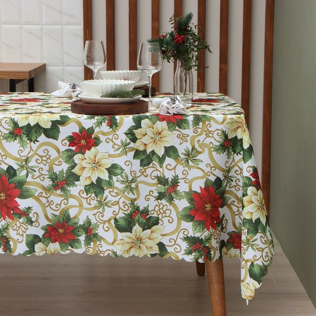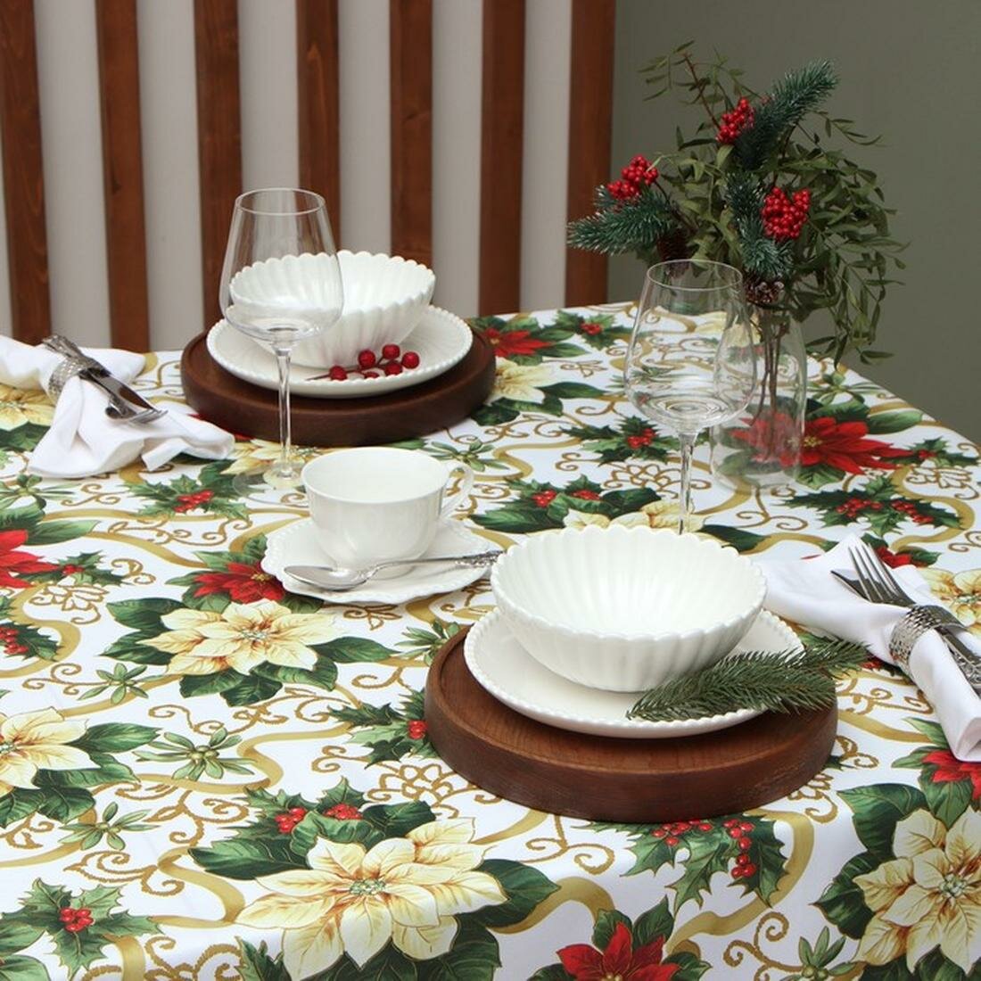Скатерть новогодняя "Рождественские цветы" 145*220 см, 100% п/э