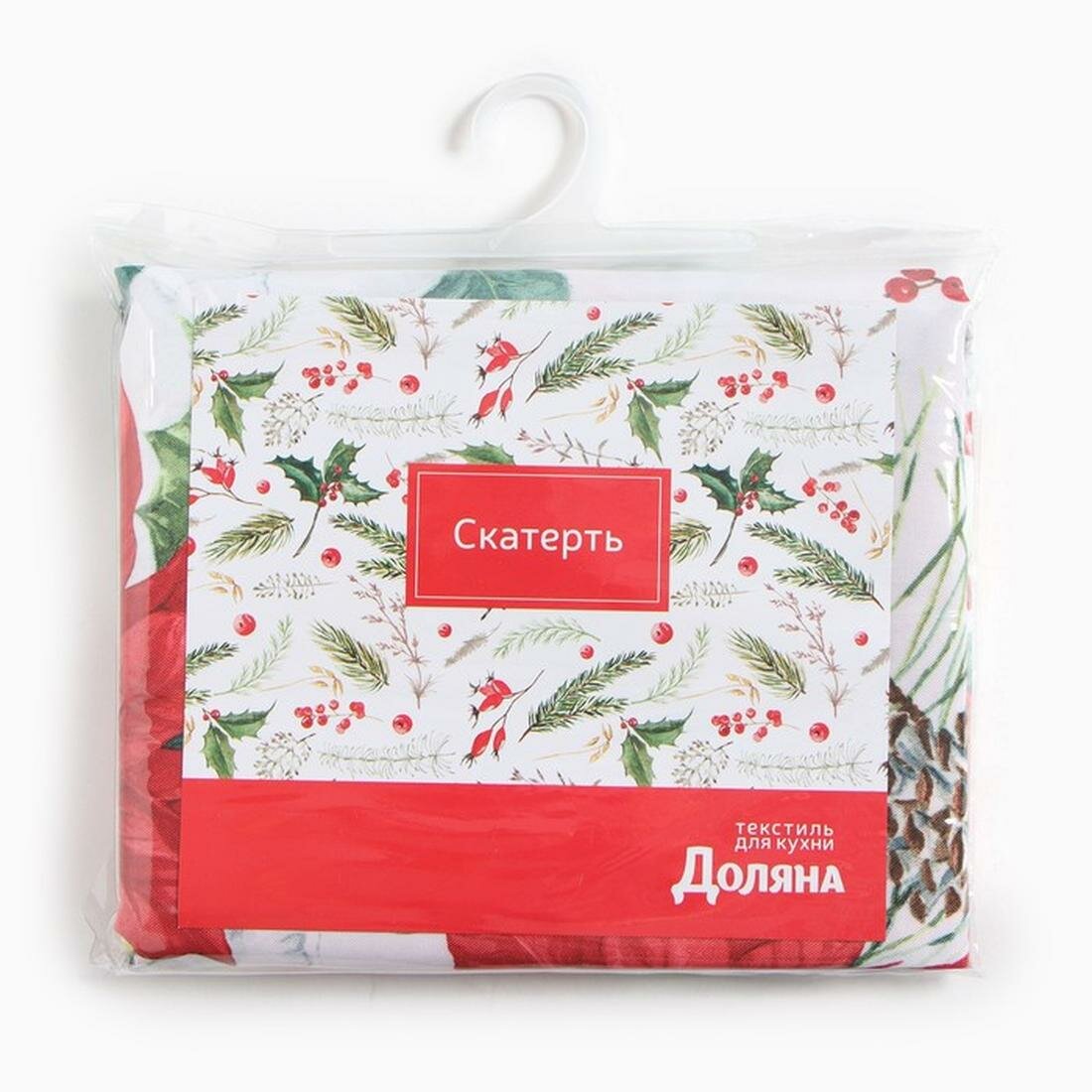 Скатерть новогодняя Доляна "Рождественский букет" 145*260 см, 100% п/э