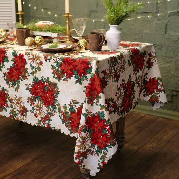 Скатерть новогодняя Доляна "Рождественские цветы" 145*220 см, 100% п/э