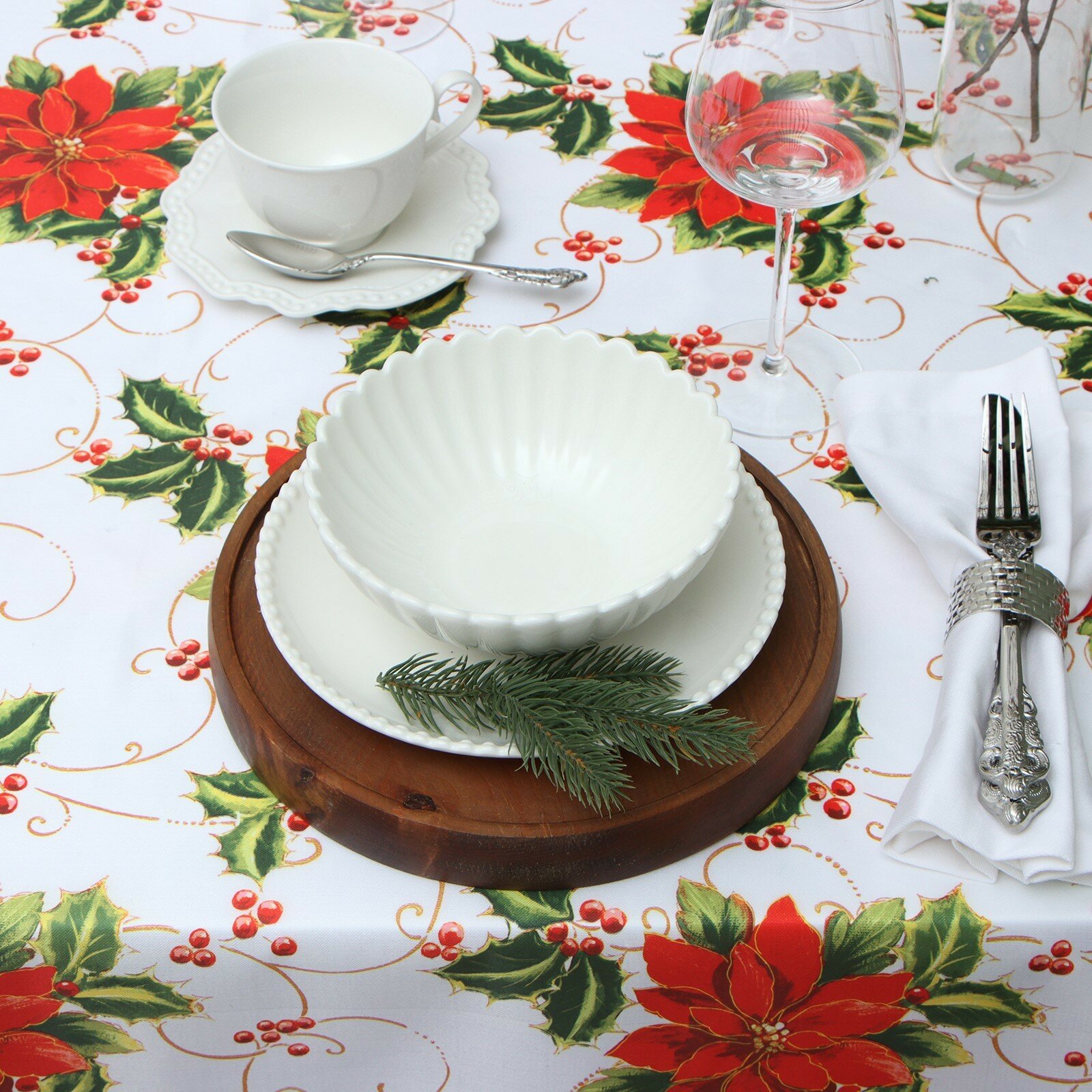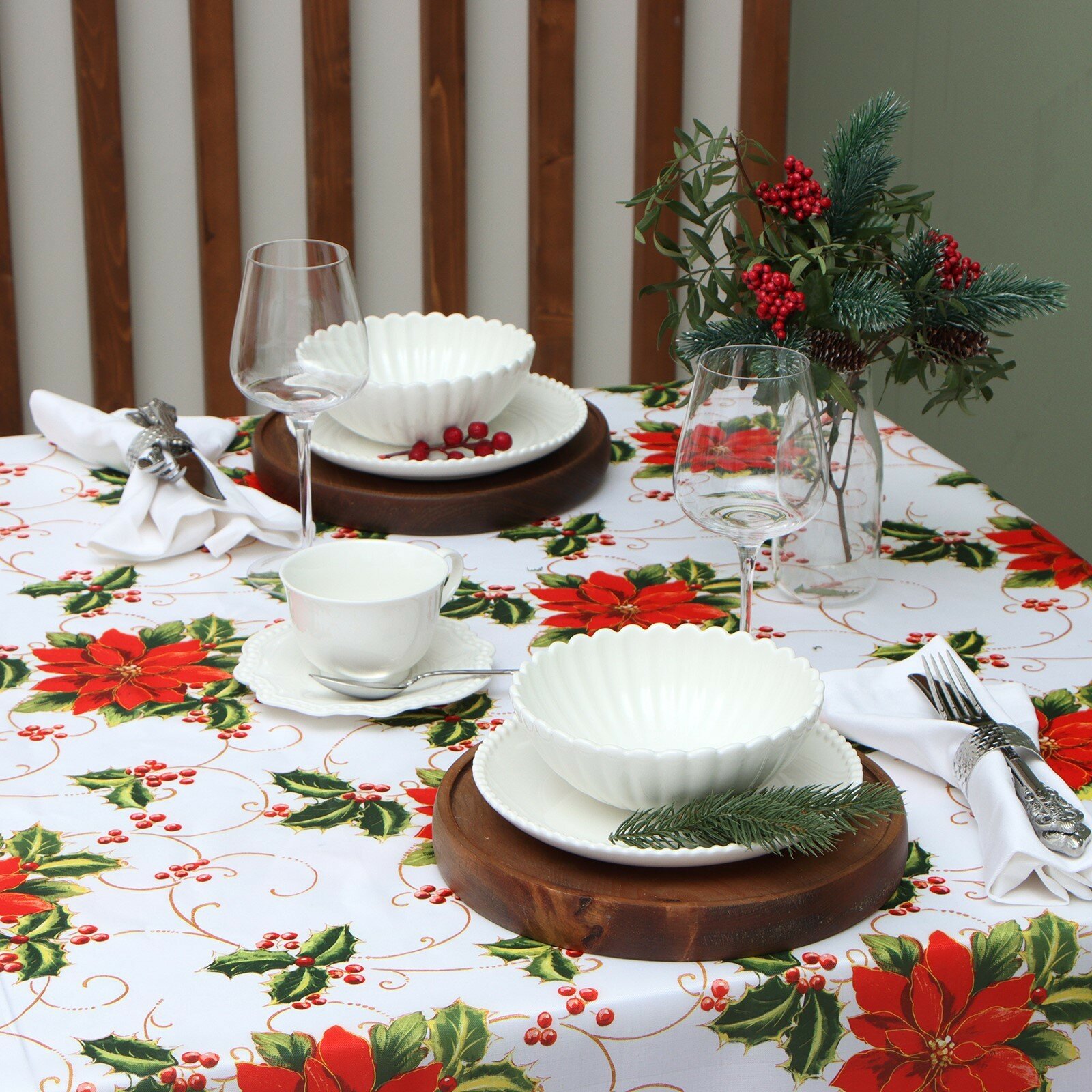 Скатерть новогодняя "Рождественские цветы" 145*220 см, 100% п/э