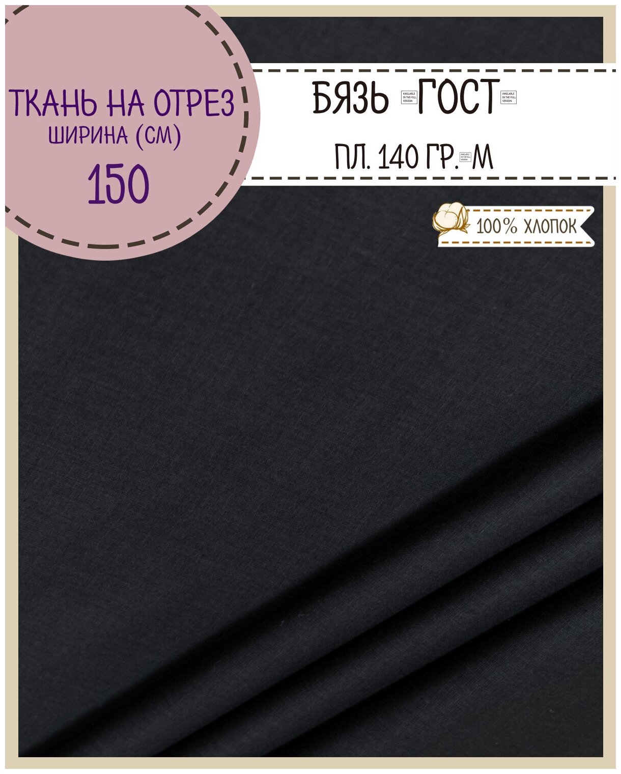 ткань Бязь ГОСТ однотонная, цв. черный, 100% хлопок, пл. 140 г/м2, ш-150 см, на отрез, цена за пог.метр