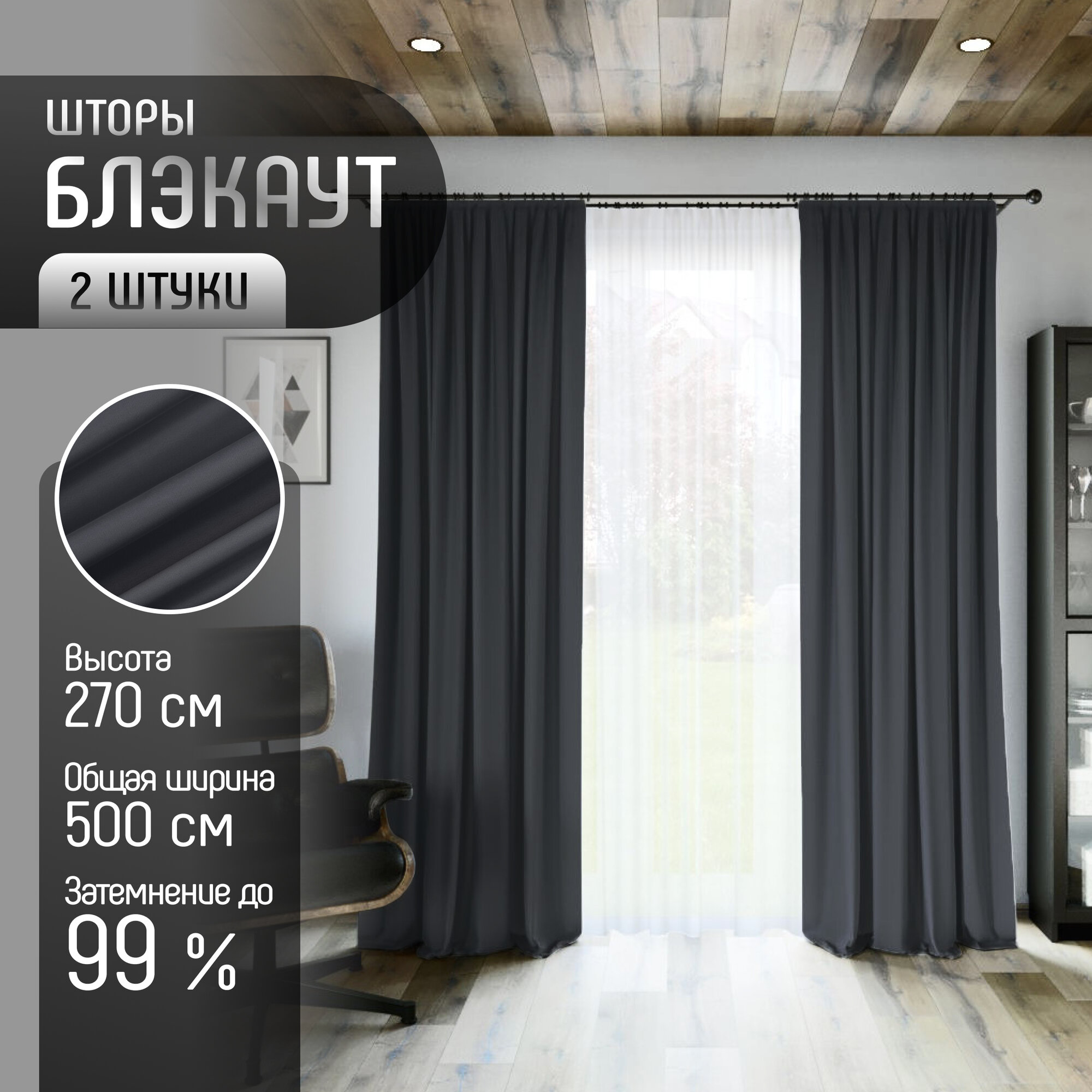 СохранитьКомплект штор Блэкаут (2 шт.) В270 х Ш500, ткань Димаут, затемняющие шторы для спальни гостиной кухни детской, светонепроницаемость до 95% интересное: