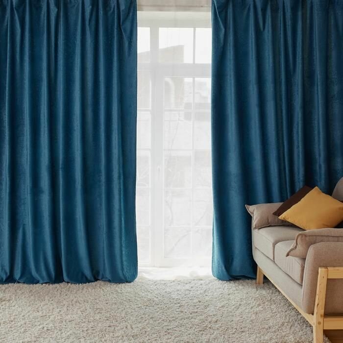 Штора портьерная Этель «Классика», цвет синий, на шторной ленте, 270х300 см, 100% п/э