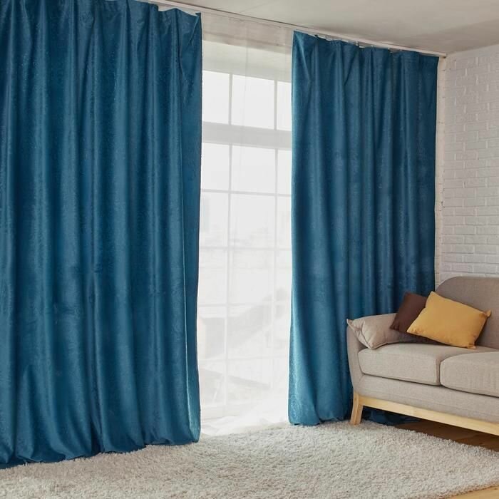 Штора портьерная Этель «Классика», цвет синий, на шторной ленте, 145х265 см, 100% п/э