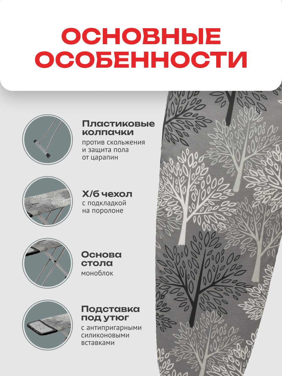 Доска гладильная Magic, моноблок, 130х38 см, цвет серый, Zalger интересное: