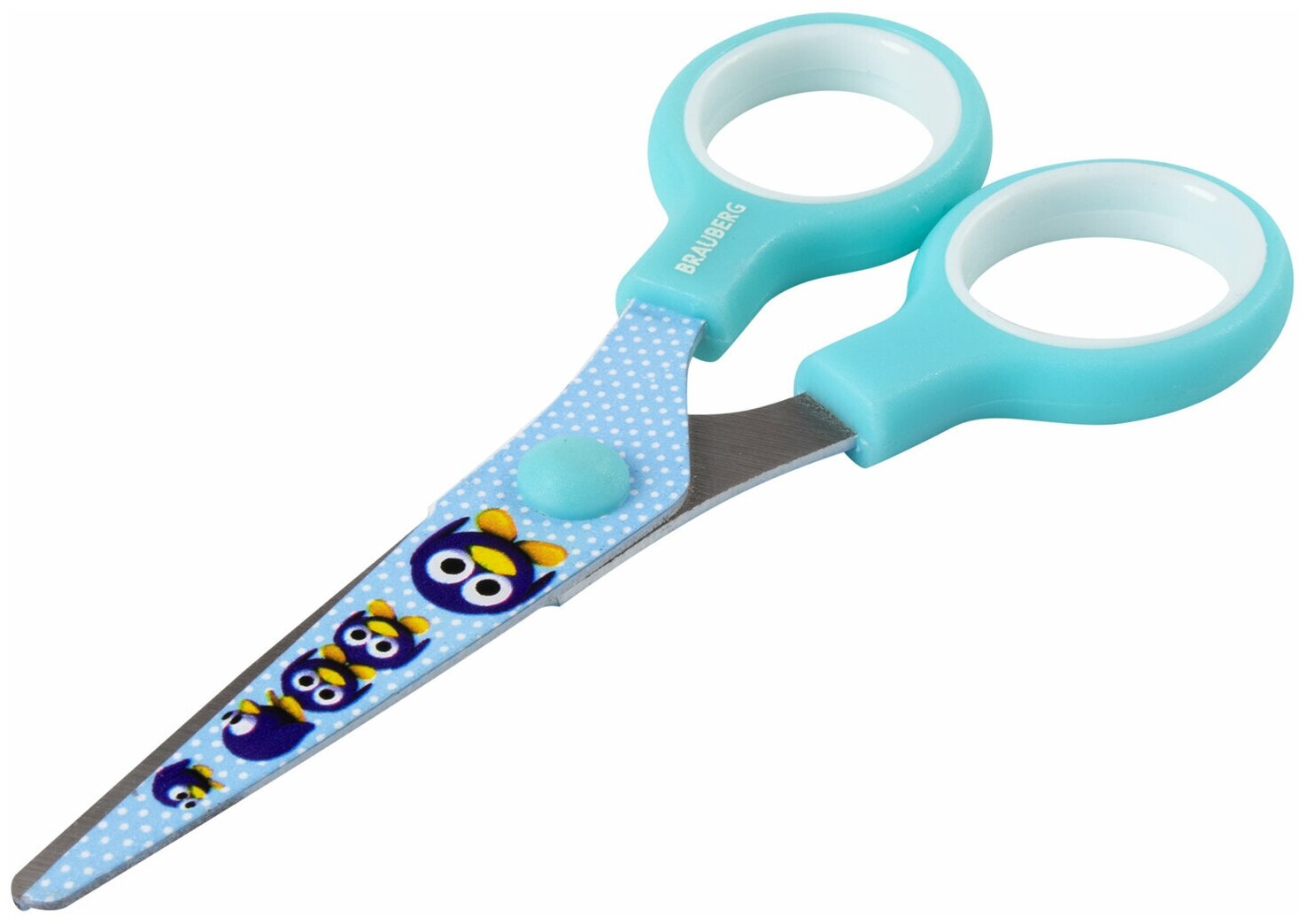 Ножницы Brauberg "Пингвины", 130 мм, с цветной печатью, голубые (232271)