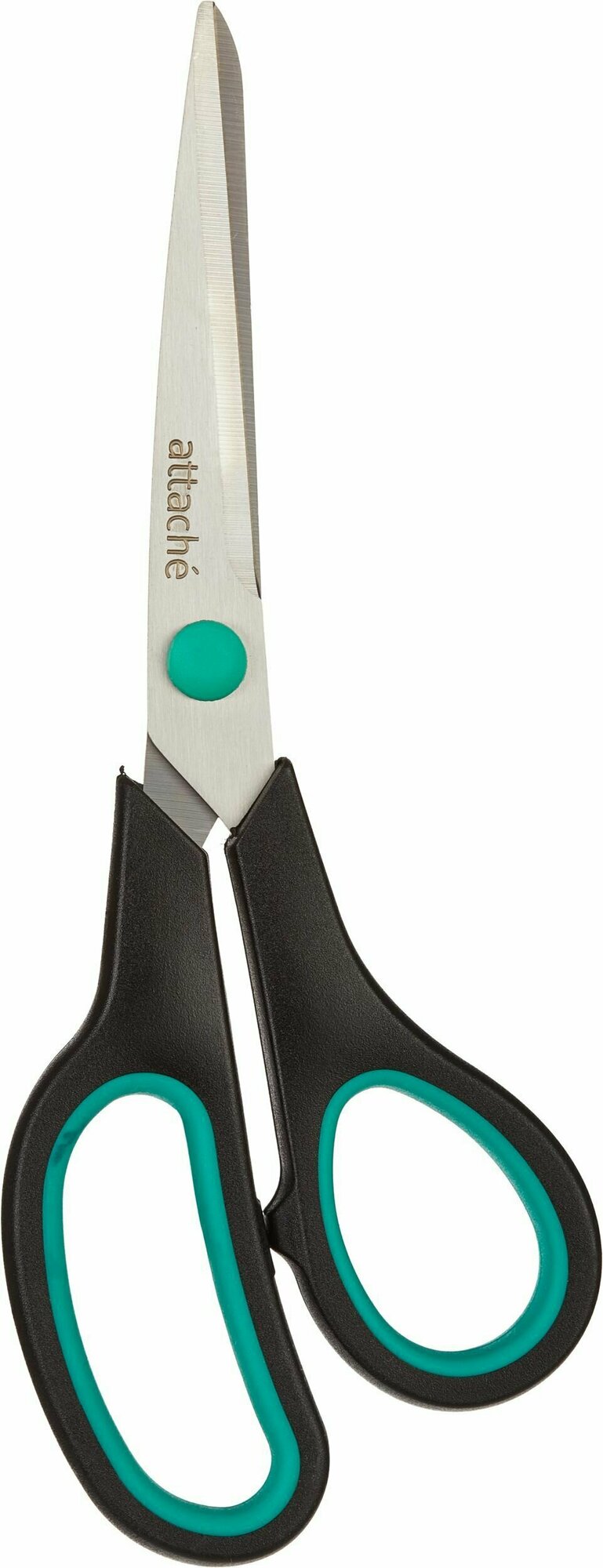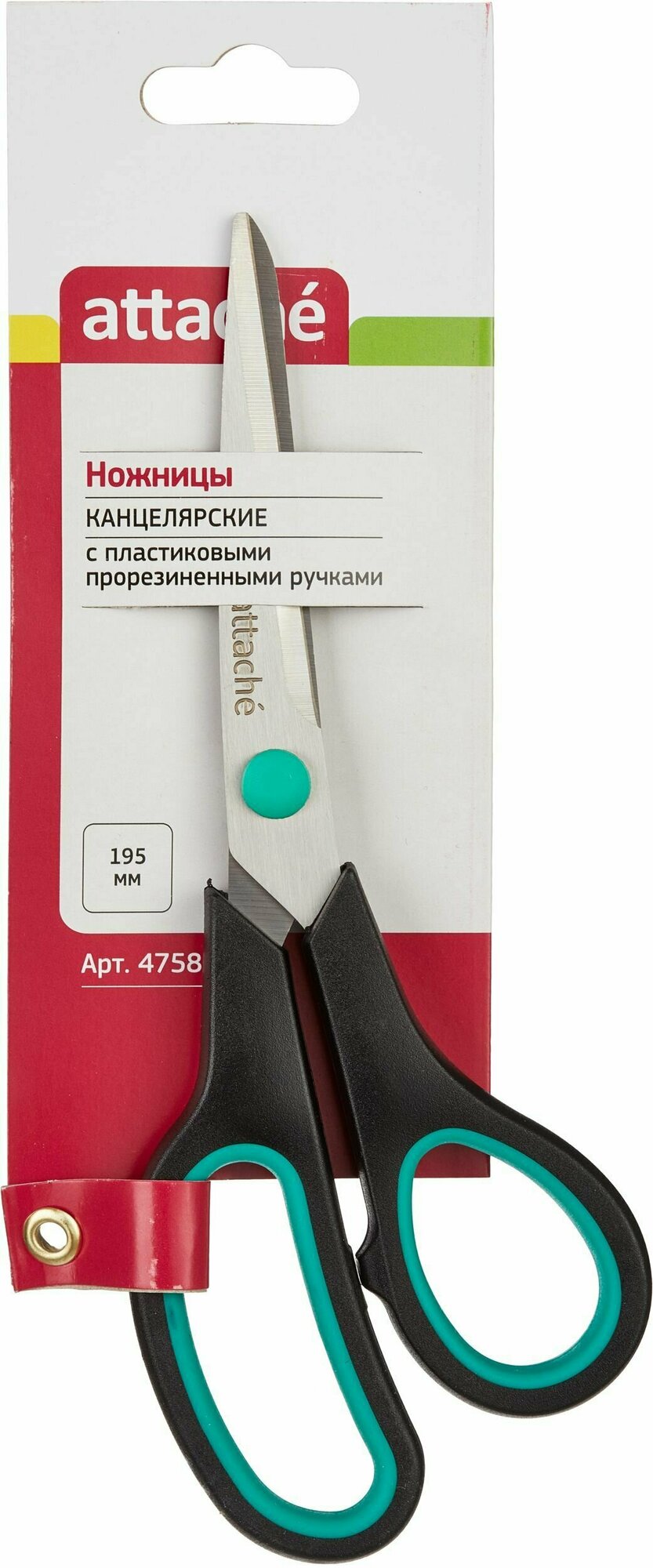 Ножницы Attache 195 мм, с пластиковыми прорезиненными ручками, цвет бирюзово-черный