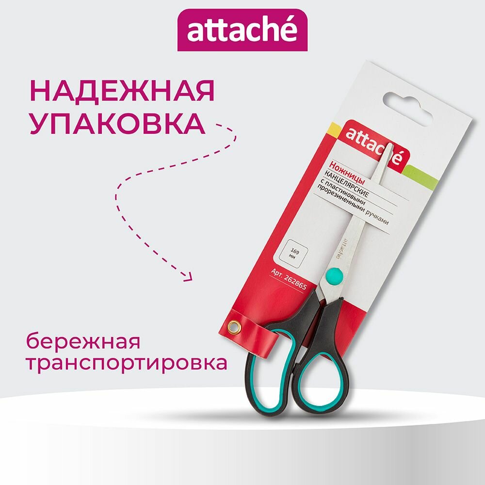 Ножницы канцелярские универсальные Attache, с прорезиненными анатомическими ручками, 16.9 см интересное: