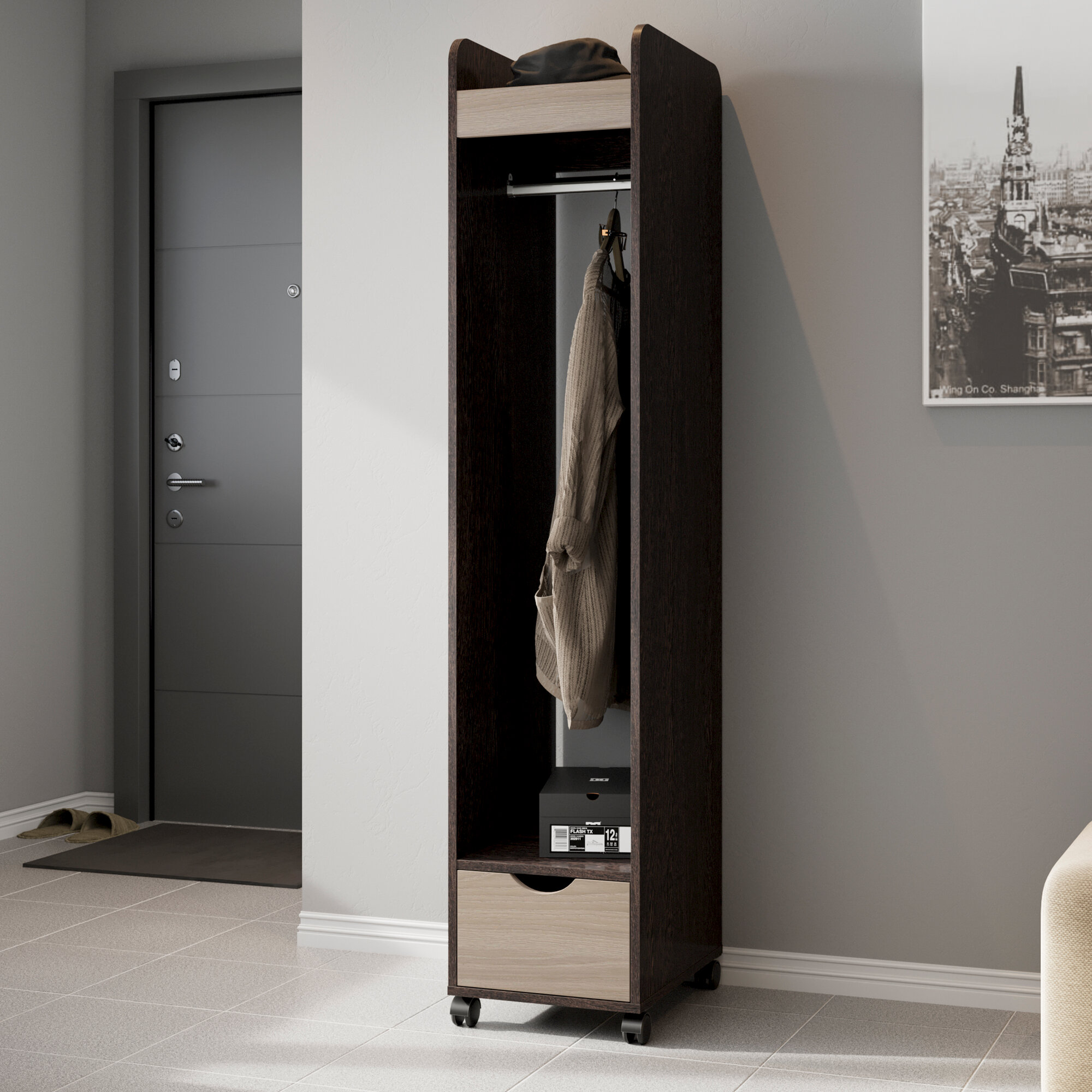 Вешалка в прихожую ТриЯ Лайт, со штангой, ящиком, зеркалом, 36x46х173 см интересное: