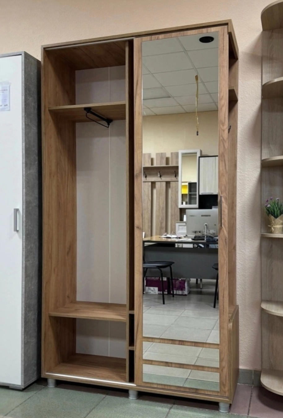 | Дополнительная информация | ниверсальная сборка. Зеркало во весь рост. Раздвижная система на алюминиевых направляющих, с использованием роликов терра. В шкафу выдвижная металлическая штанга. |