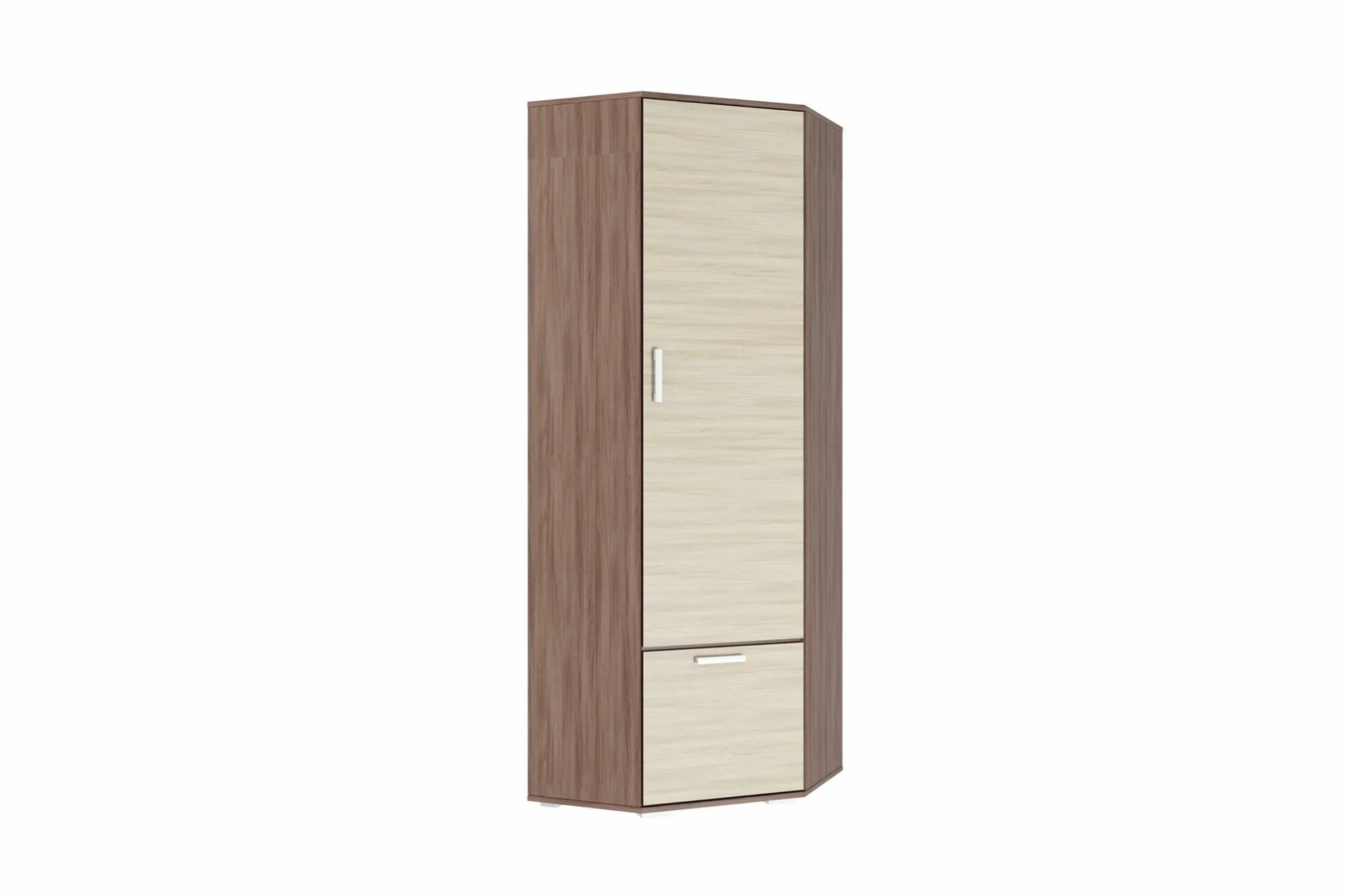 Прихожая комплект САША-6 (правая) от Фант-Мебель, с зеркалом, с обувницей, шкафом и ящиками, 156x203,6x43 см. Ясень темный/Ясень светлый