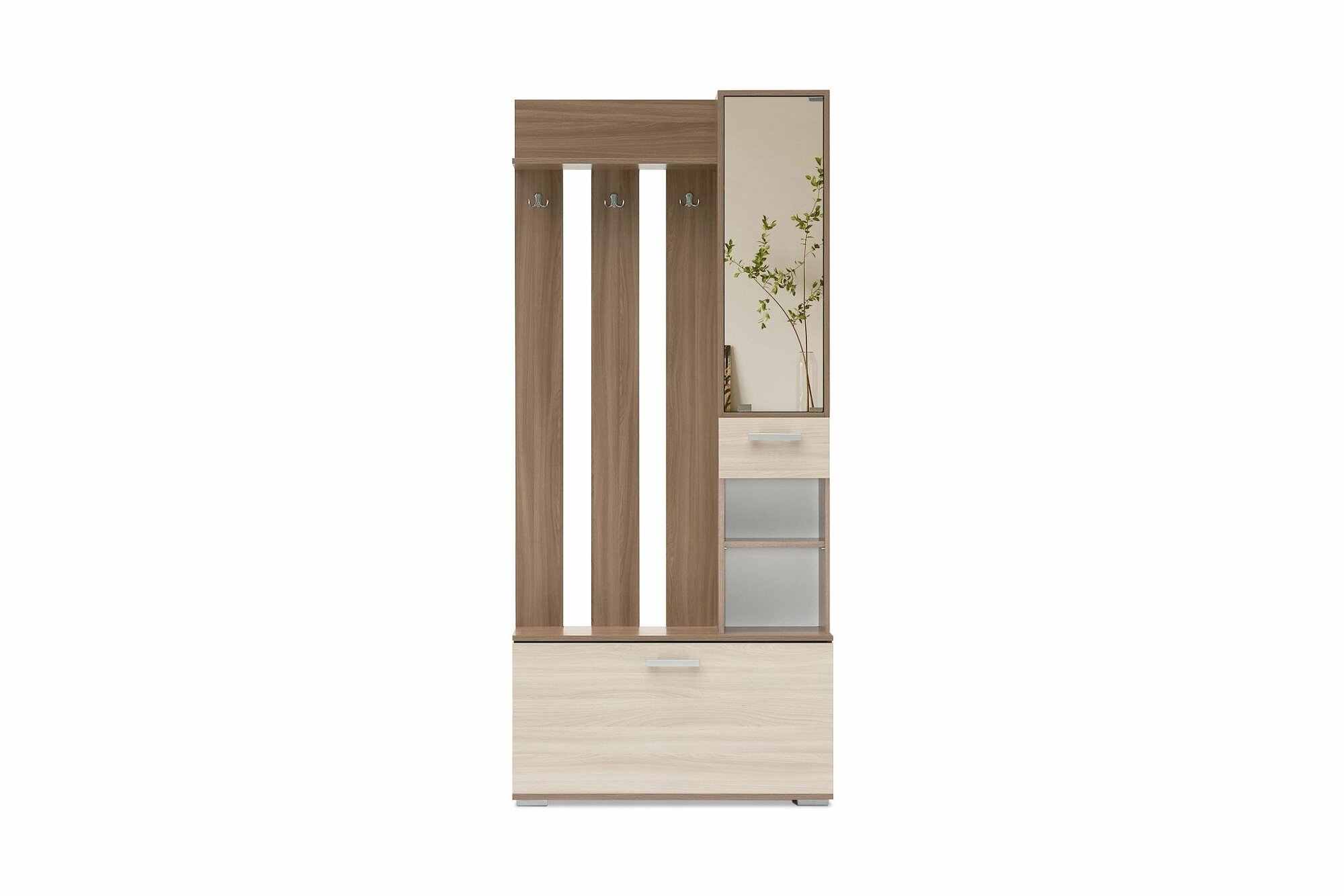 Прихожая НИКА ВЗ910 ЛДСП Вешалка с зеркалом Ясень Шимо темный-светлый