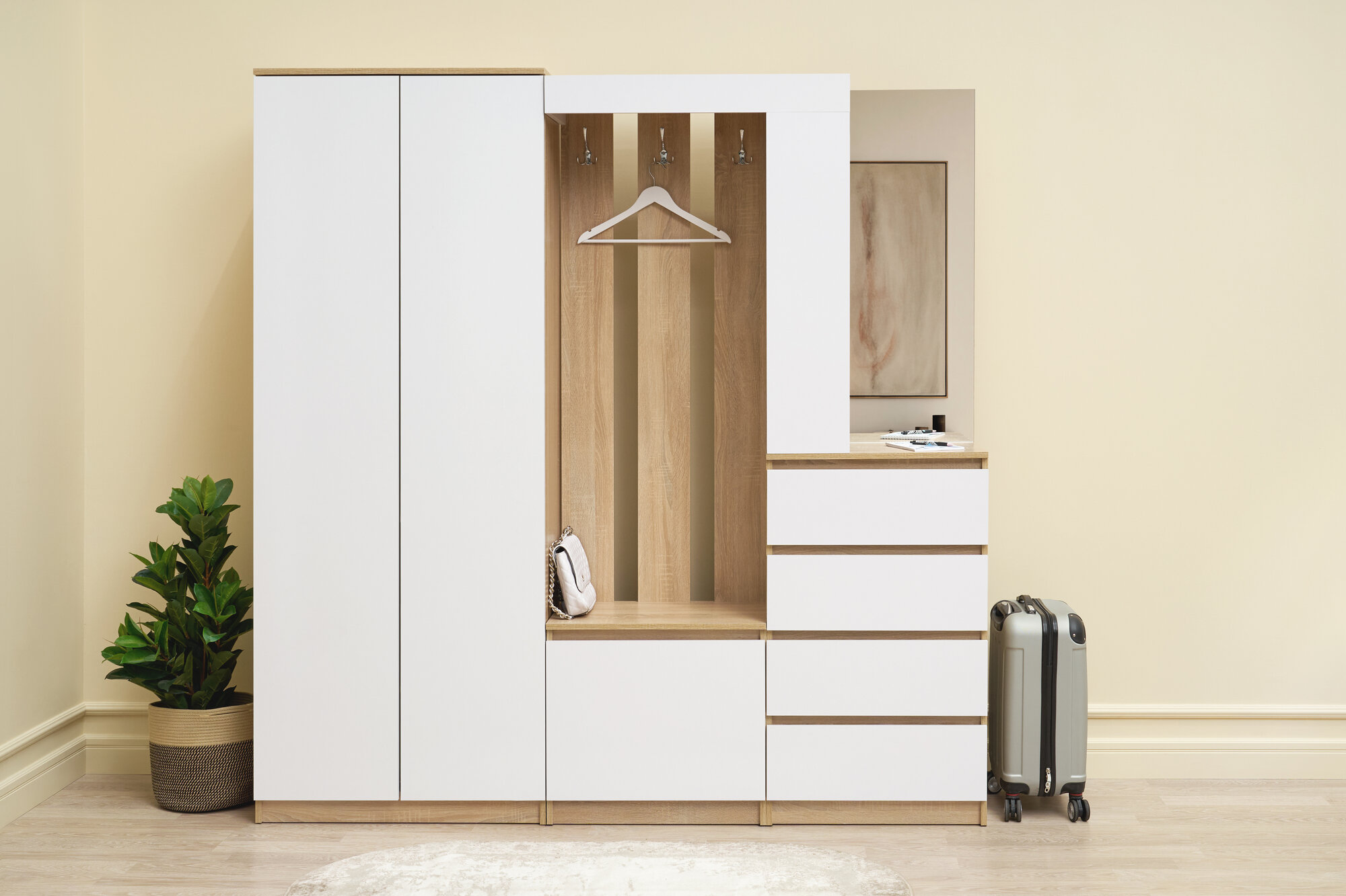 Прихожая Миф Челси белый глянец холодный / дуб сонома 120х37.8х200 см