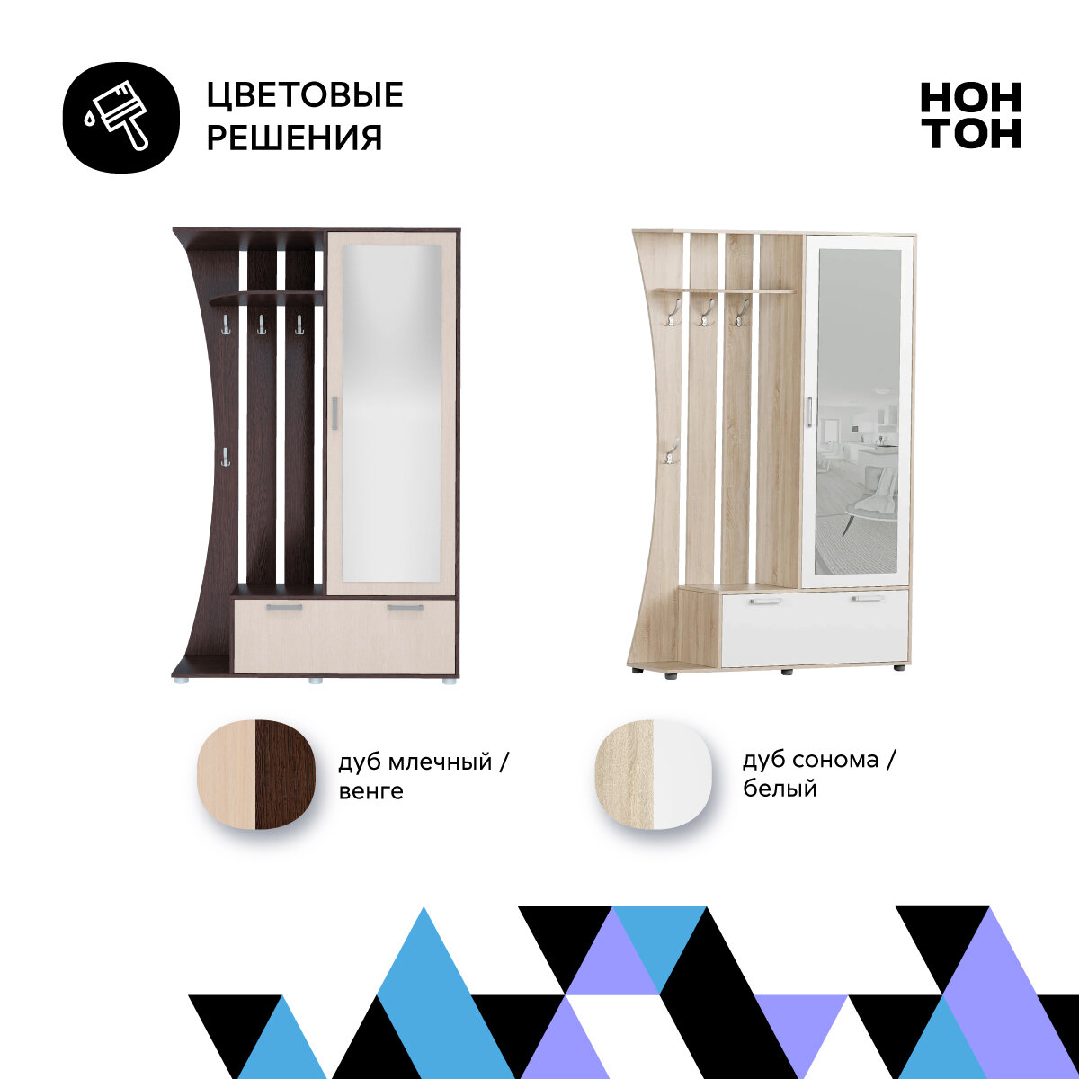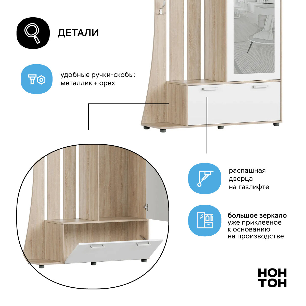 Прихожая с зеркалом Нонтон Домино-4У, дуб сонома светлый / белый, 115 см интересное: