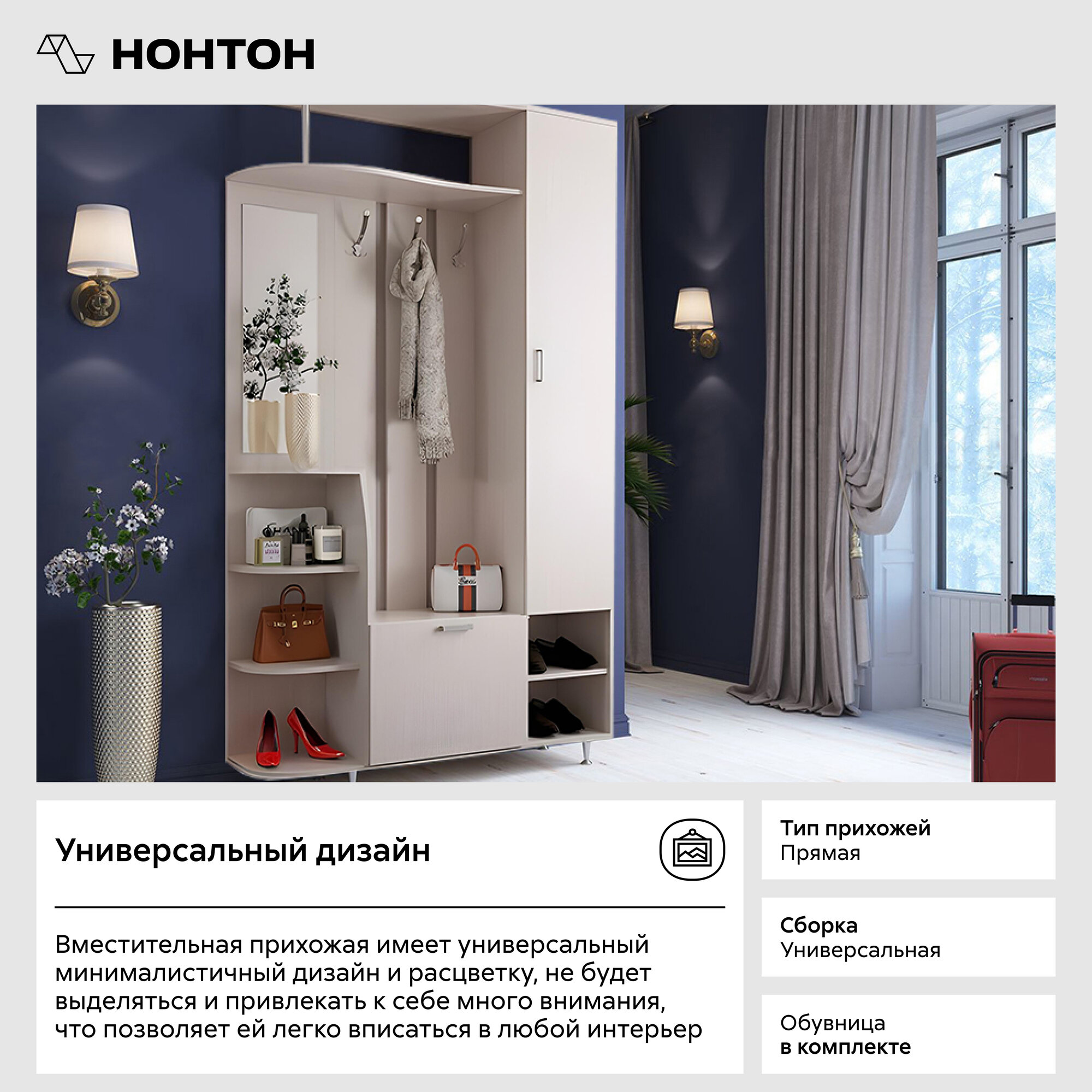 | Особенности | для маленькой прихожей, для узкой прихожей, крепление к стене, модульная конструкция, со штангой для вешалок, угловая конструкция, шкаф с зеркалом |