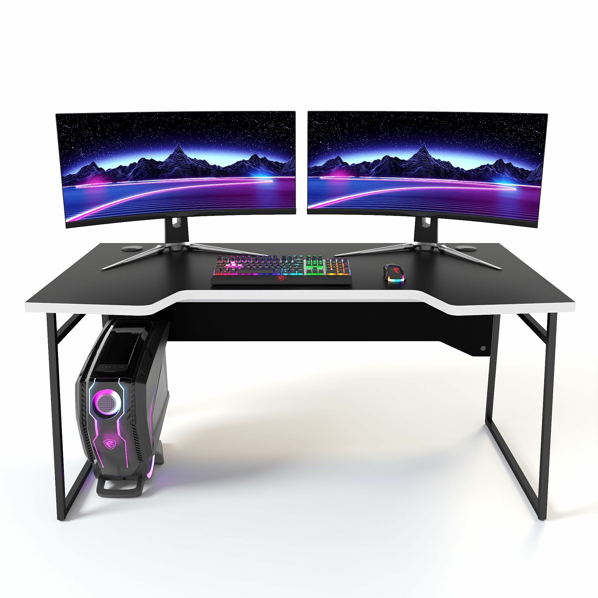 Купить Стол компьютерный игровой, офисный, геймерский Expert черный/белый каркас металл для пк и ноутбука 140х77 см