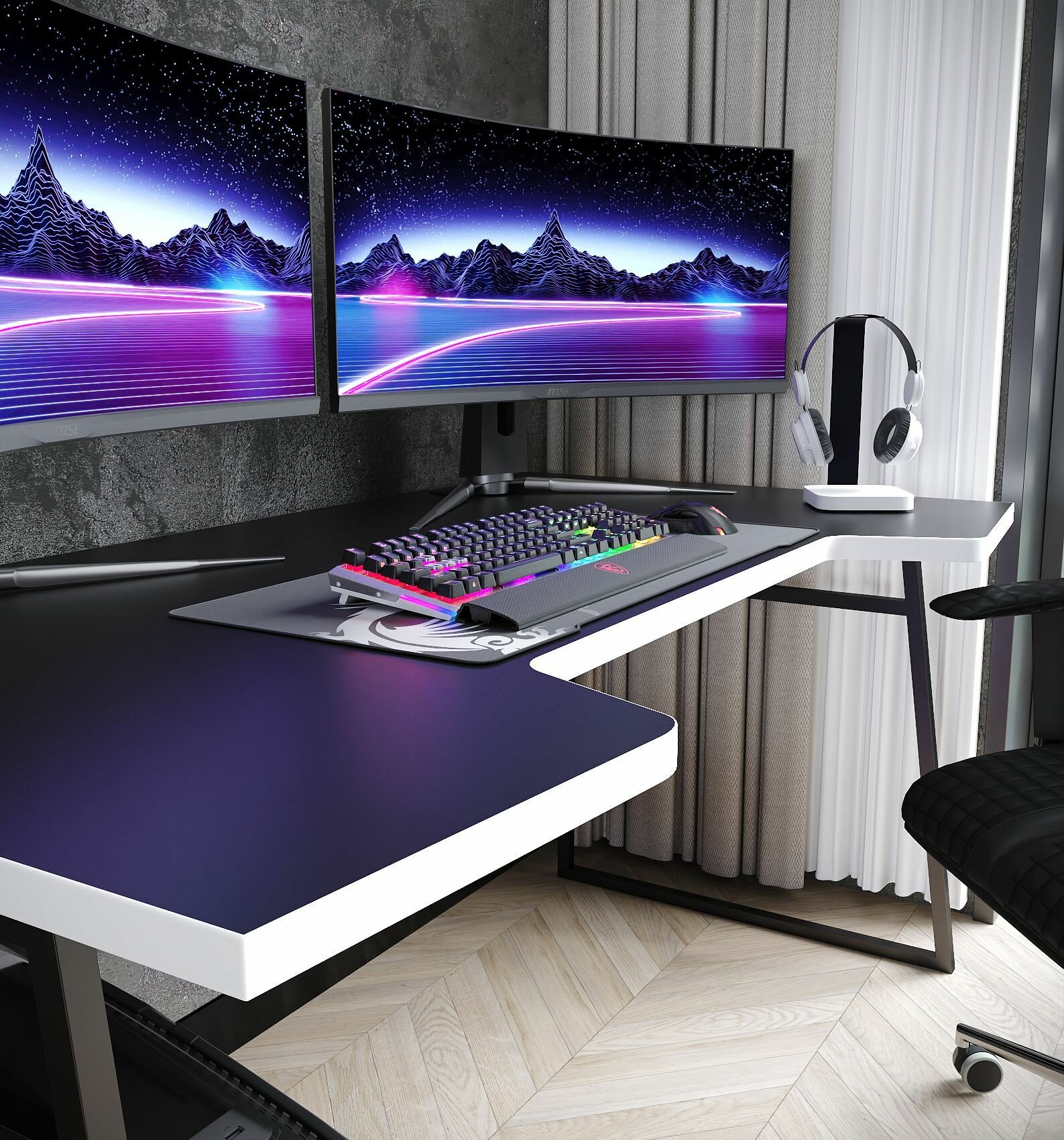 Стол компьютерный игровой геймерский Expert белый/черный каркас металл для пк и ноутбука