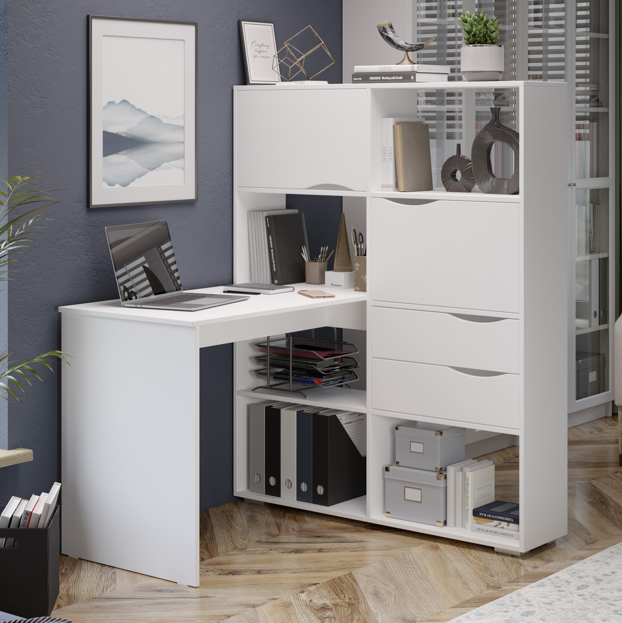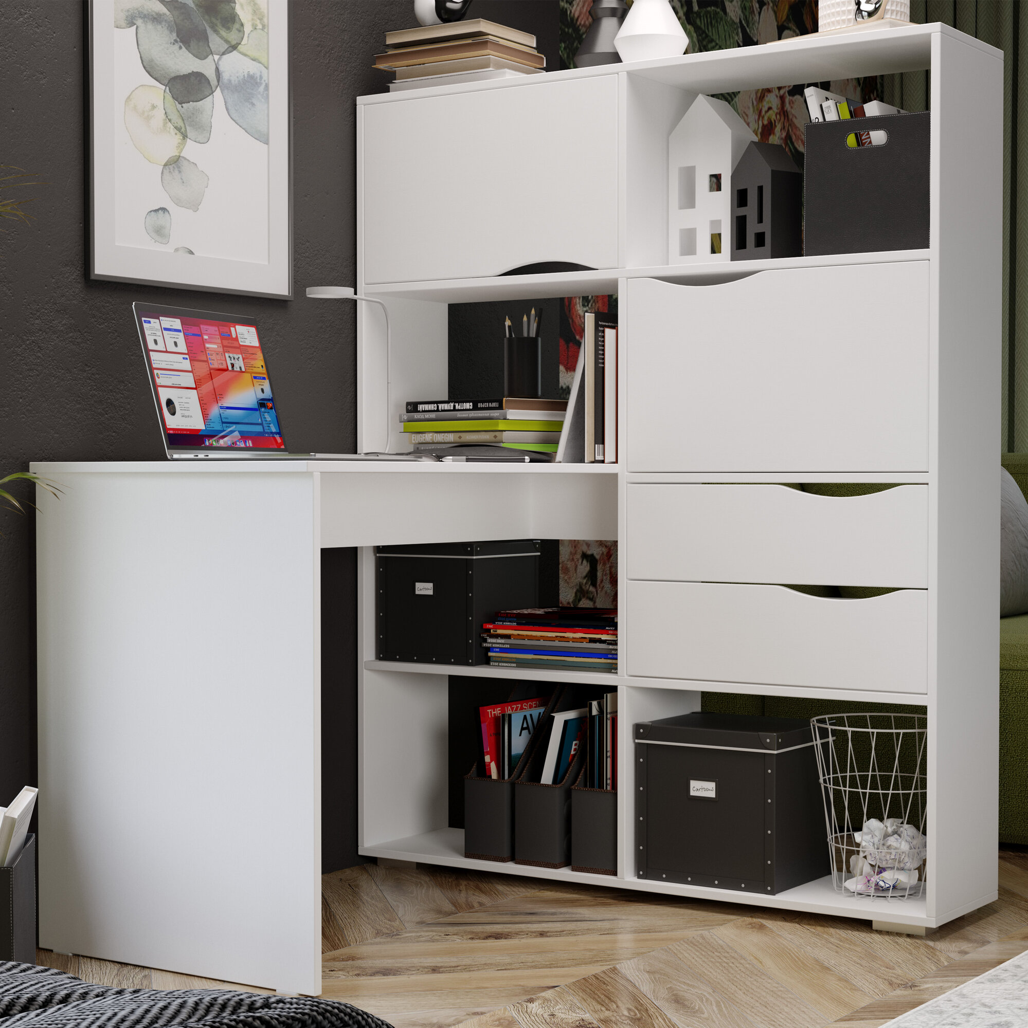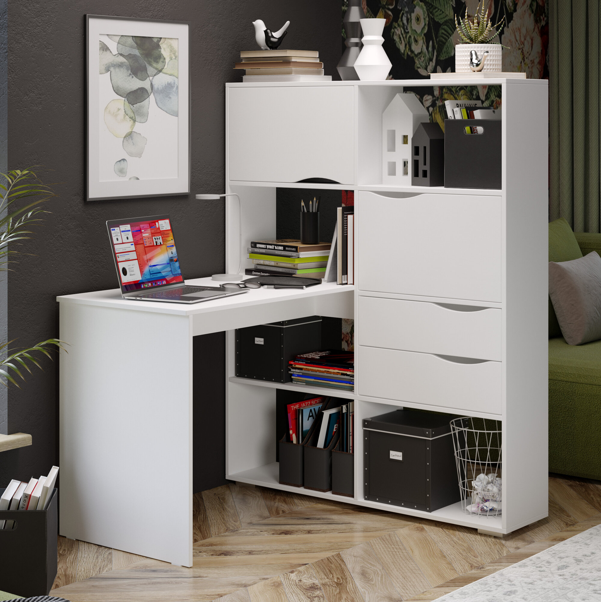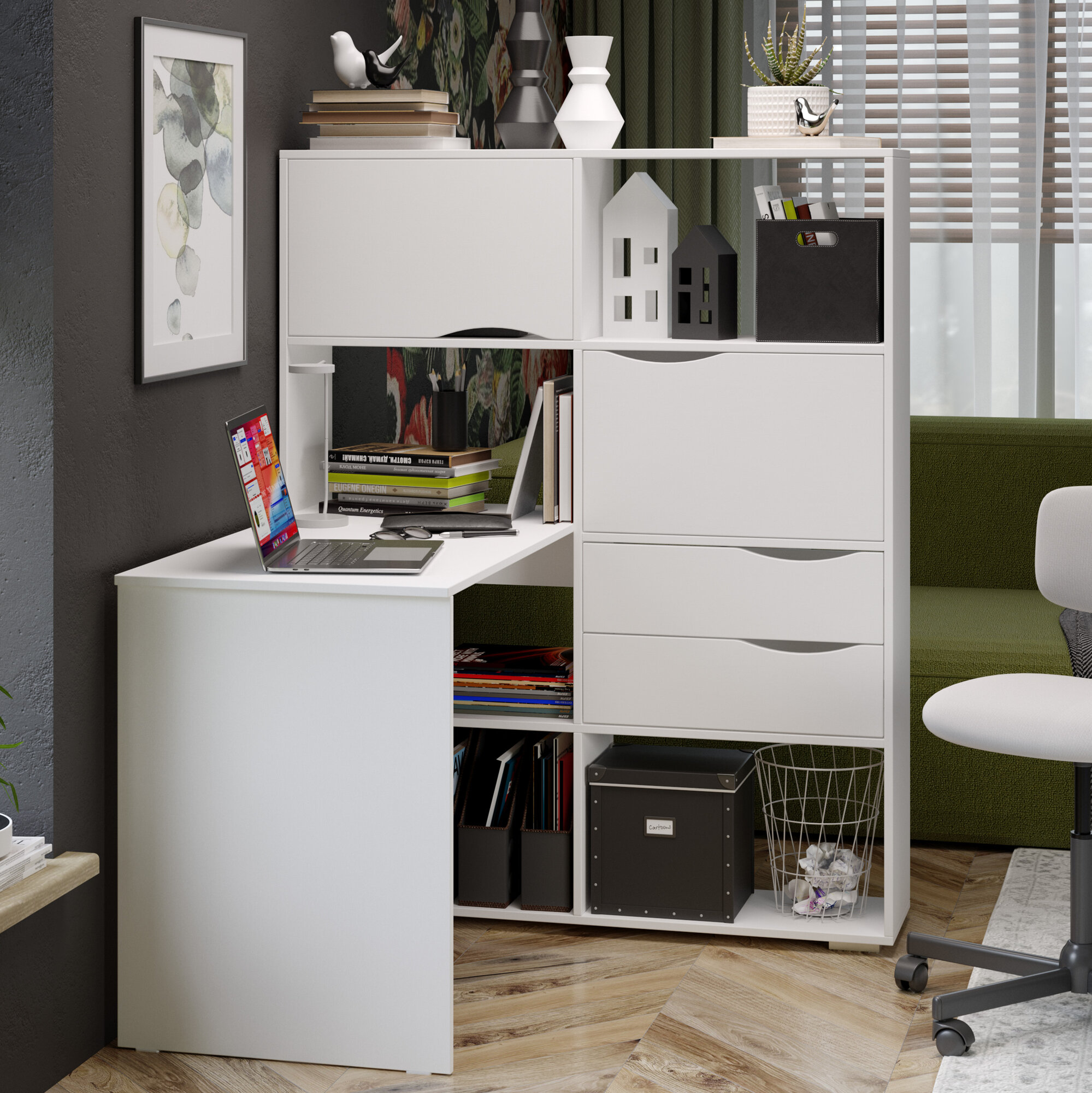 Купить Письменный стол ТриЯ тип 7 белый ясень с ящиком и стеллажом, 115х110х143 см