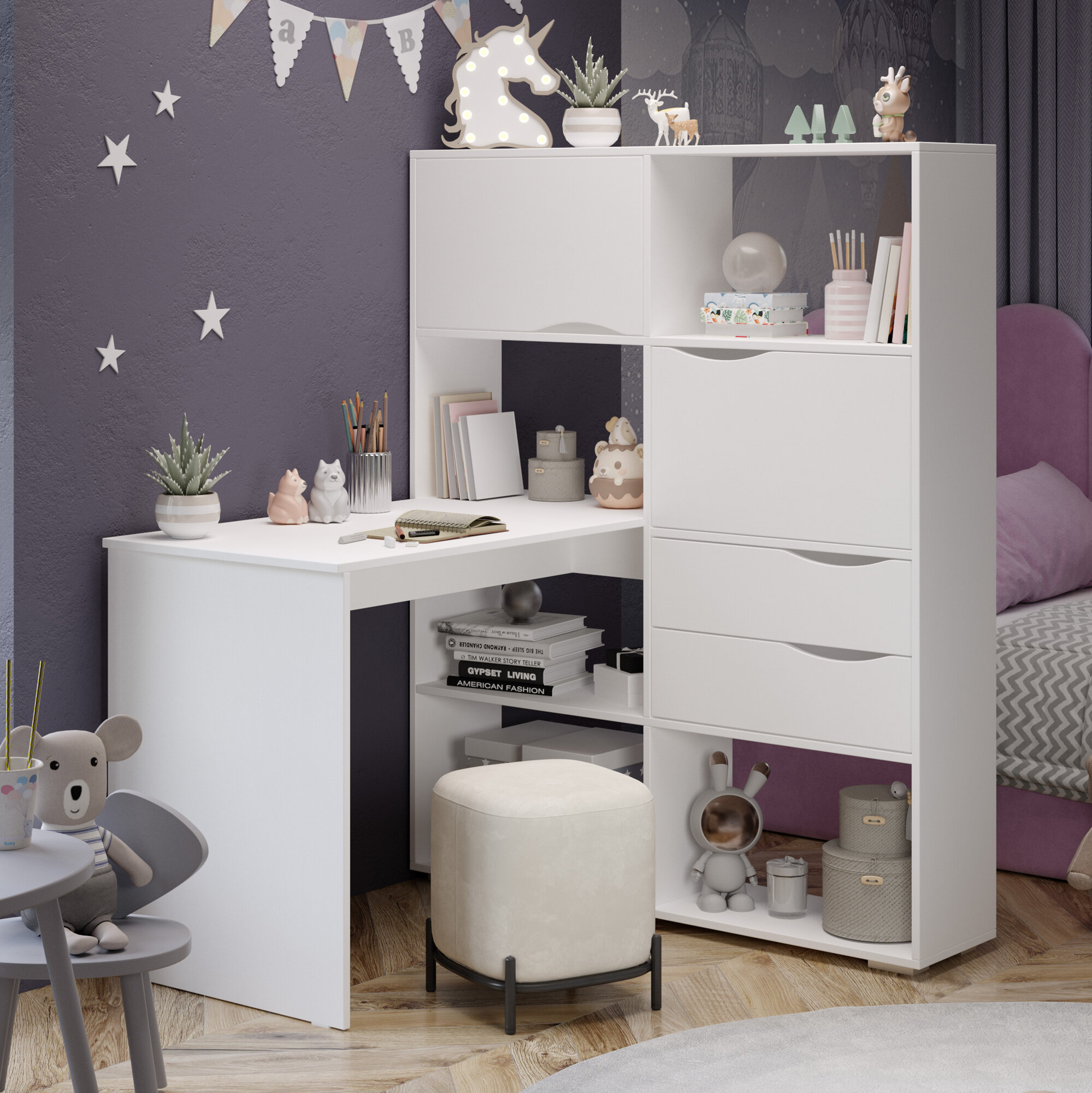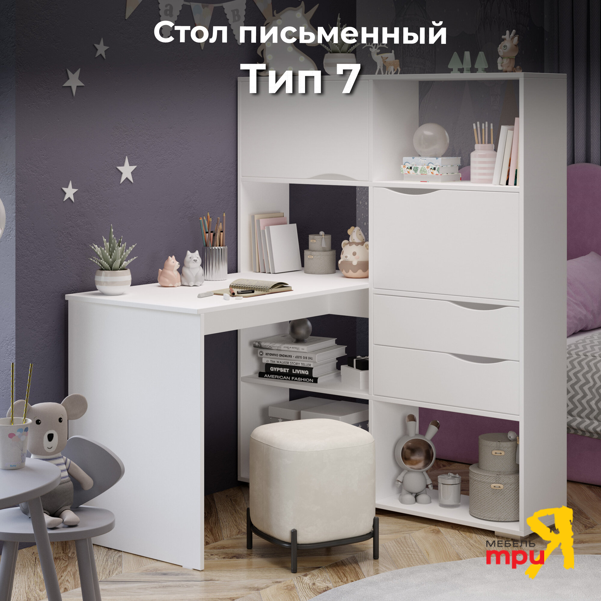 Письменный стол ТриЯ тип 7 белый ясень с ящиком и стеллажом, 115х110х143 см интересное: