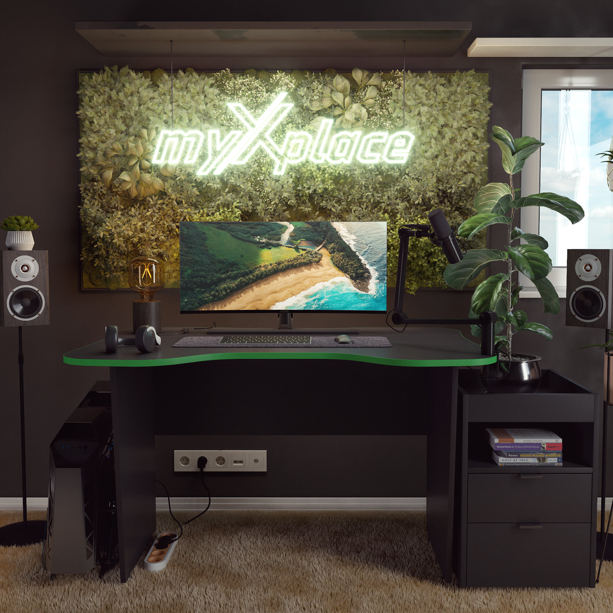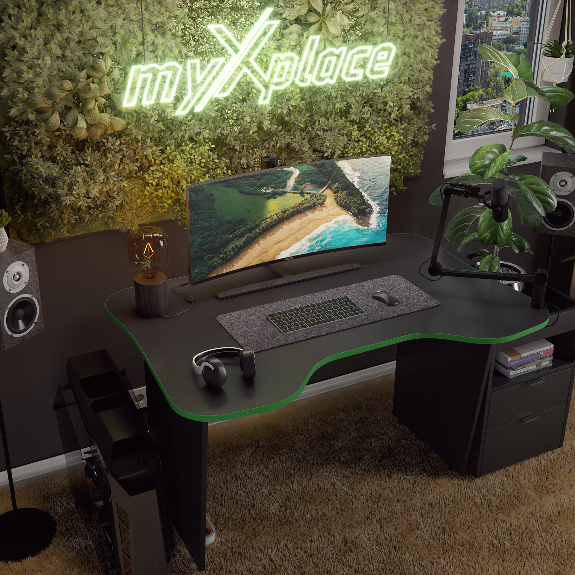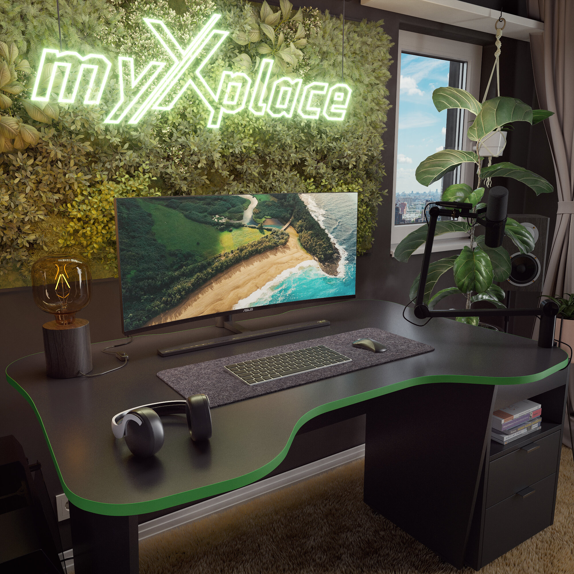 Купить Игровой компьютерный стол FLY, Черно-зеленый