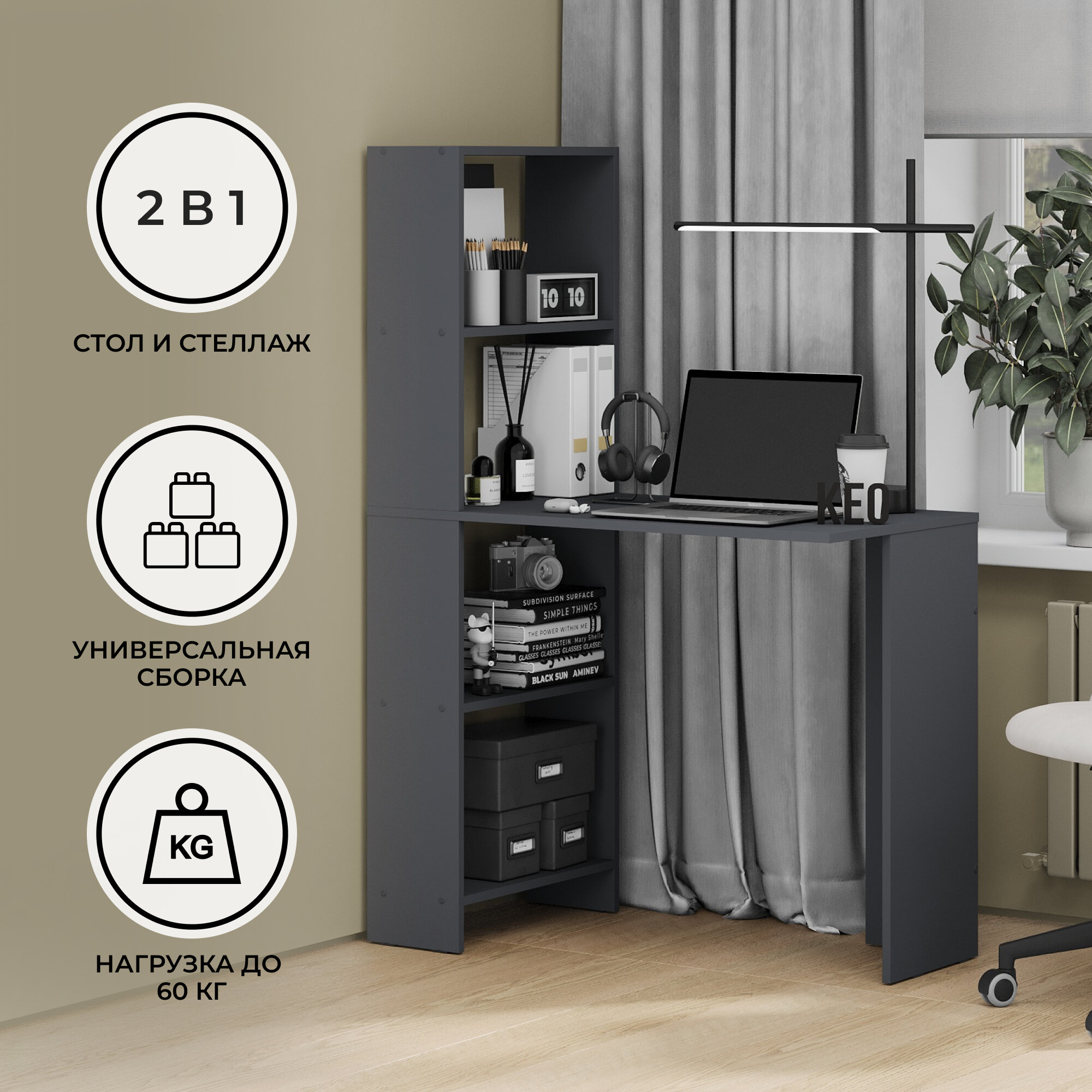 Компьютерный стол Кео СТК-100 графит письменный офисный для ноутбука с полками